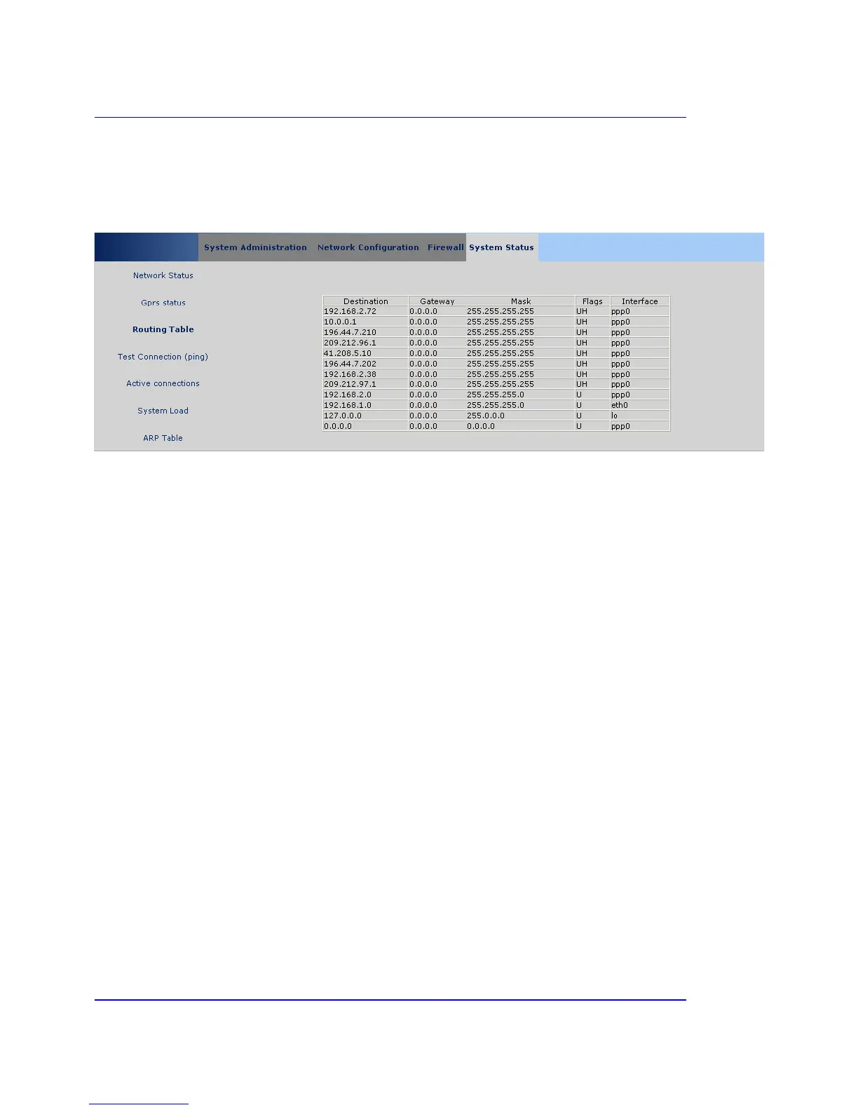 This panel shows the current routing table.