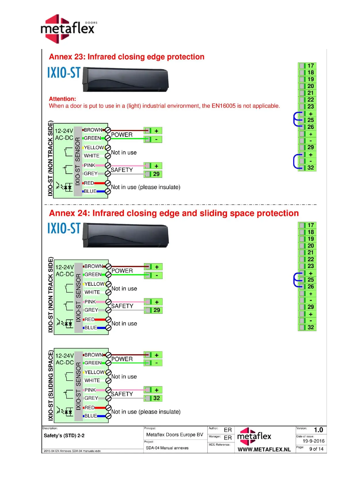 Metaflex SDA-04DCB2 - Annex 23: Infrared Closing Edge Protection; Annex 24: Infrared Closing Edge and Sliding Space Protection