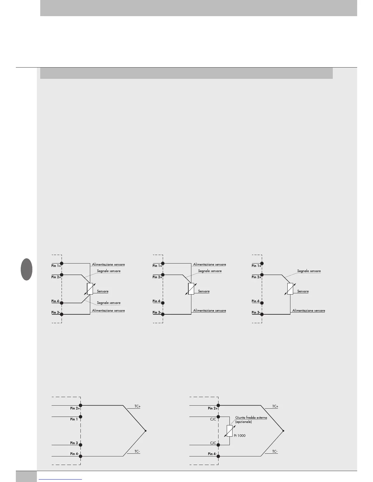 3.3.6.1 Connessioni elettriche dei sensori di temperatura (serie Pt e Ni)