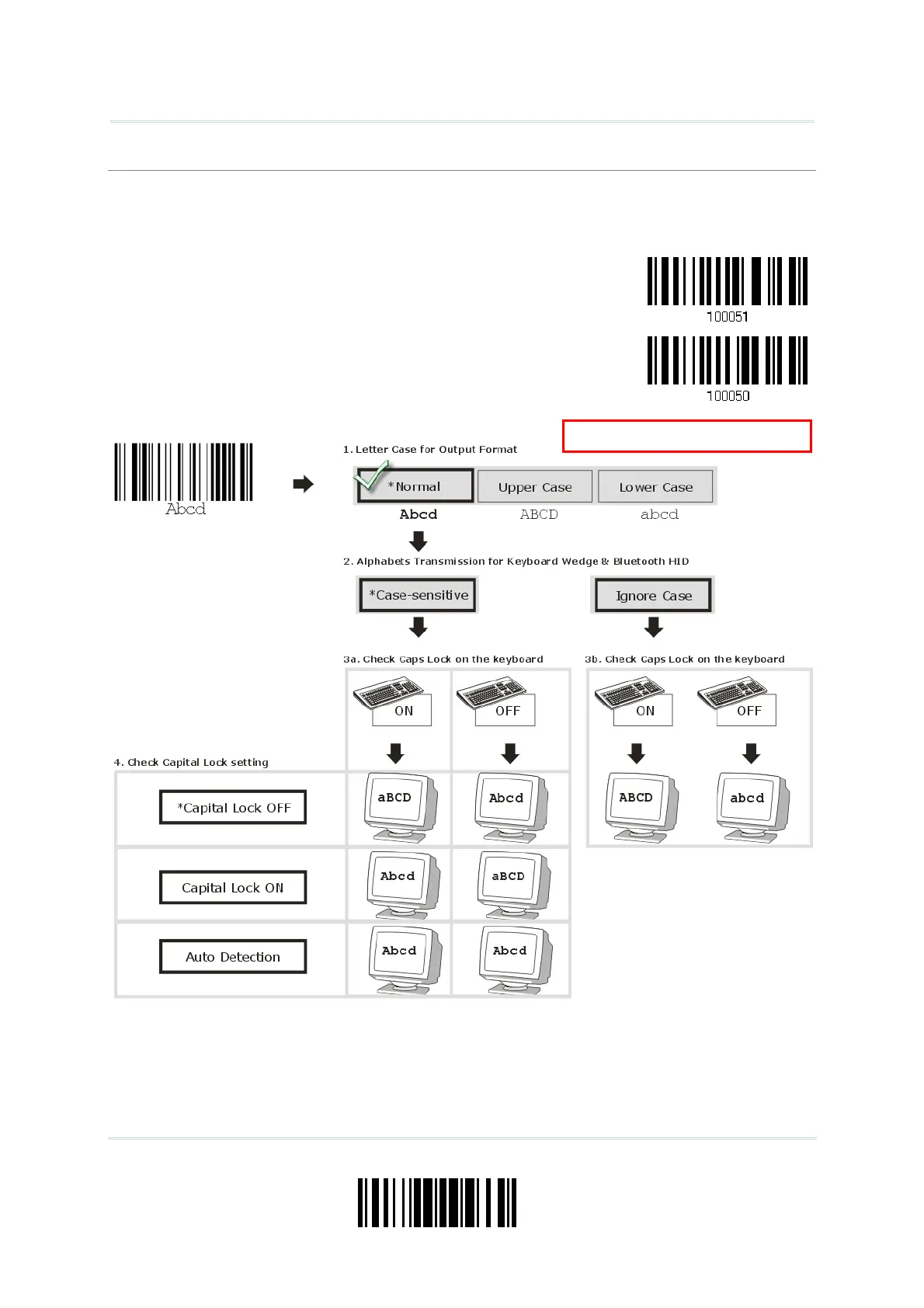 transmitted according to their original case, the status of Caps Lock on the keyboard, as well as the