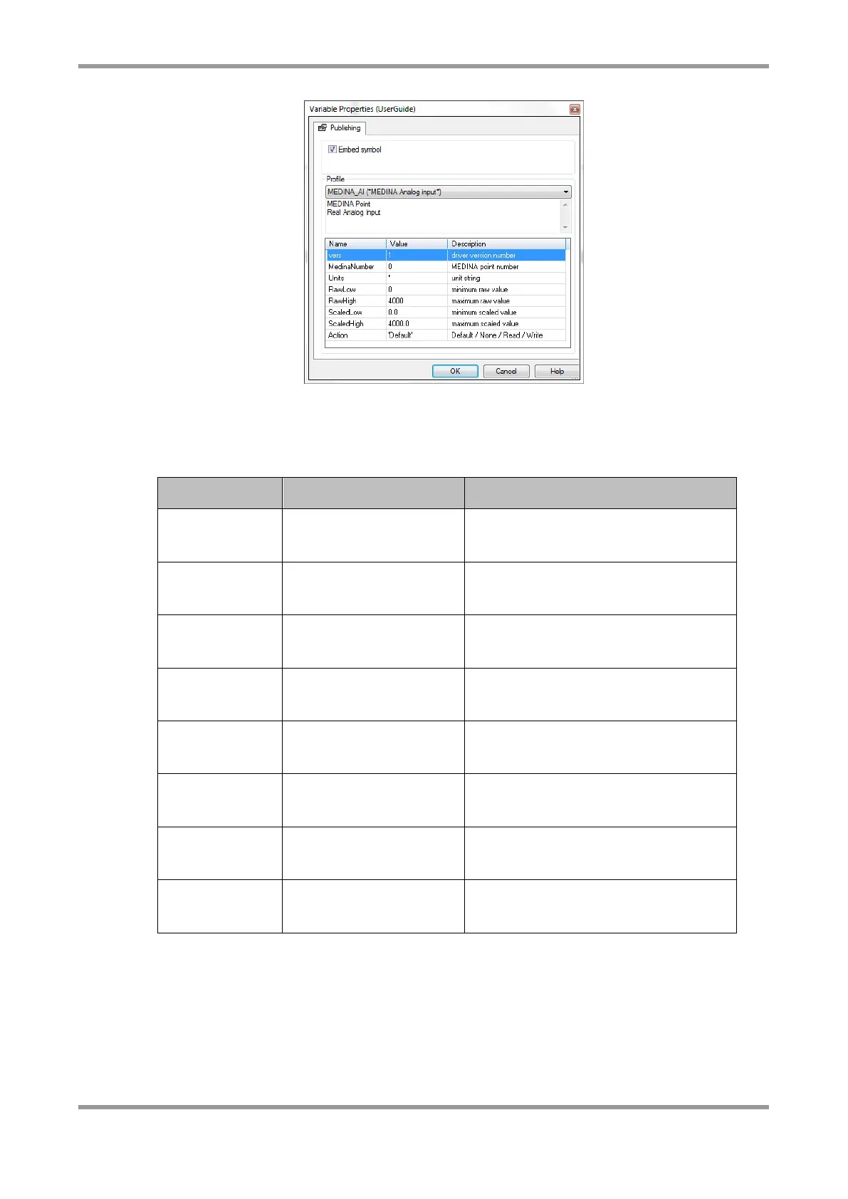 Note: For analogue points, the scaling defined in the properties is used to evaluate a