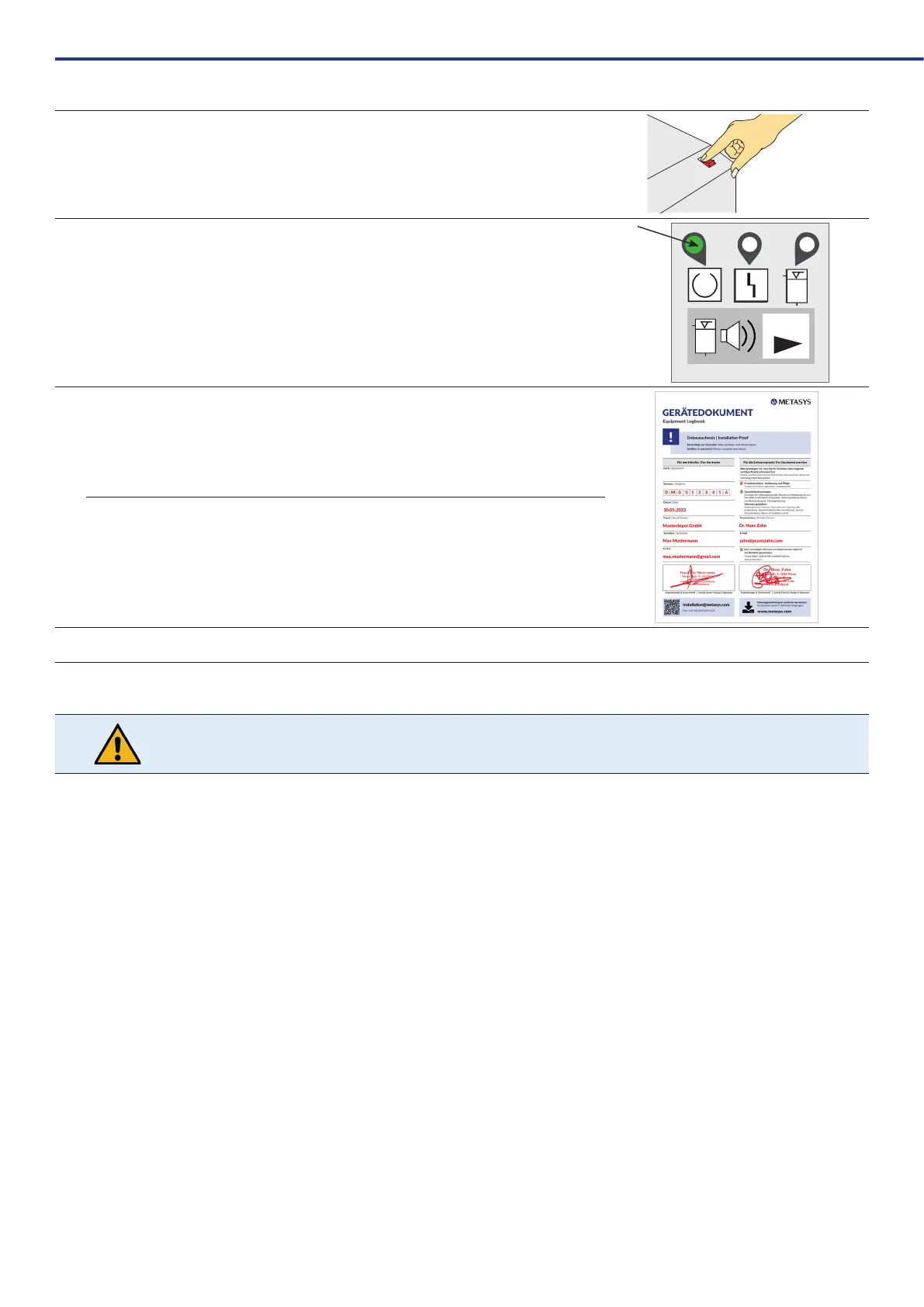 Fill in the installation proof and device logbook and return them to METASYS (installation@metasys.