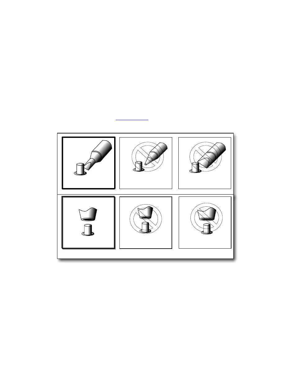 1. ハンダ継ぎ手とチップ先端間の接触面積が最大となるようなチップを選定してください。