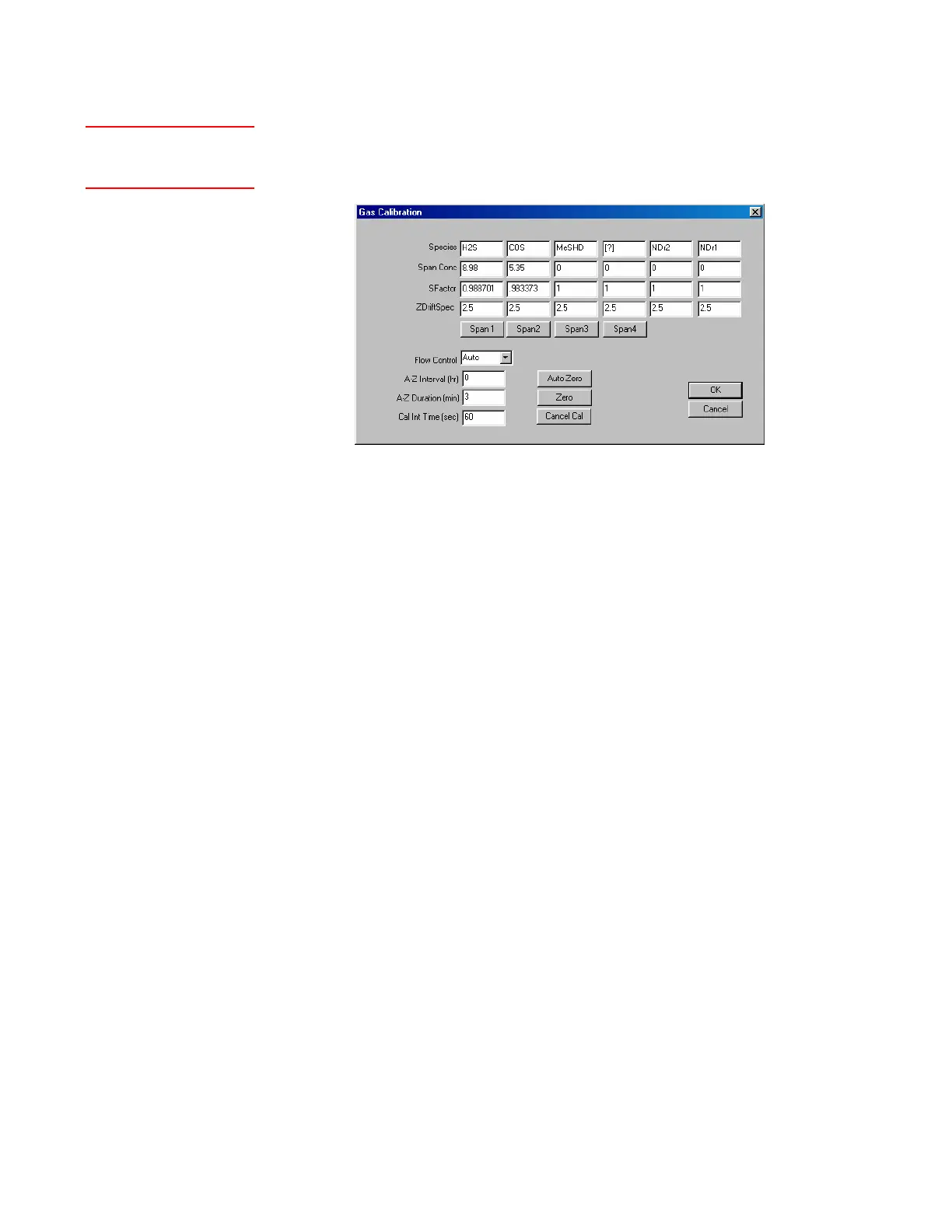 Gas Calibration dialog