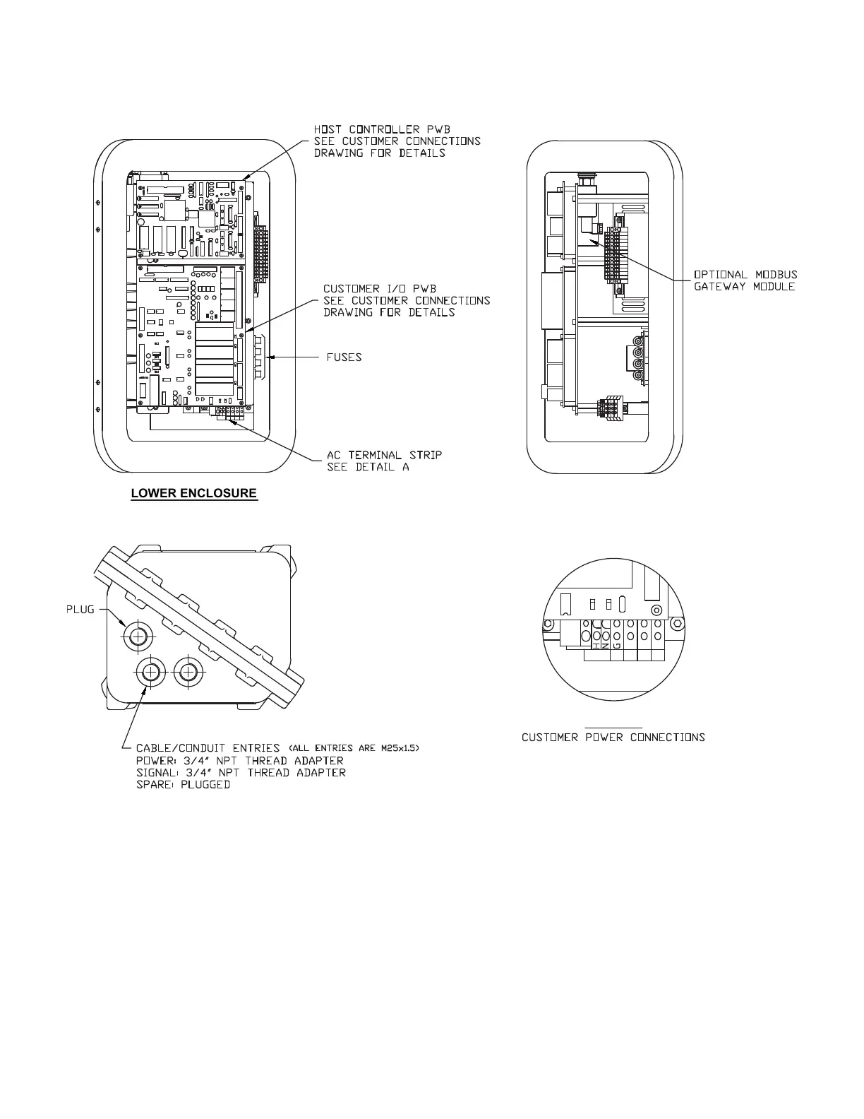 Conduit Entries, I/O and AC Power Connection Locations, North