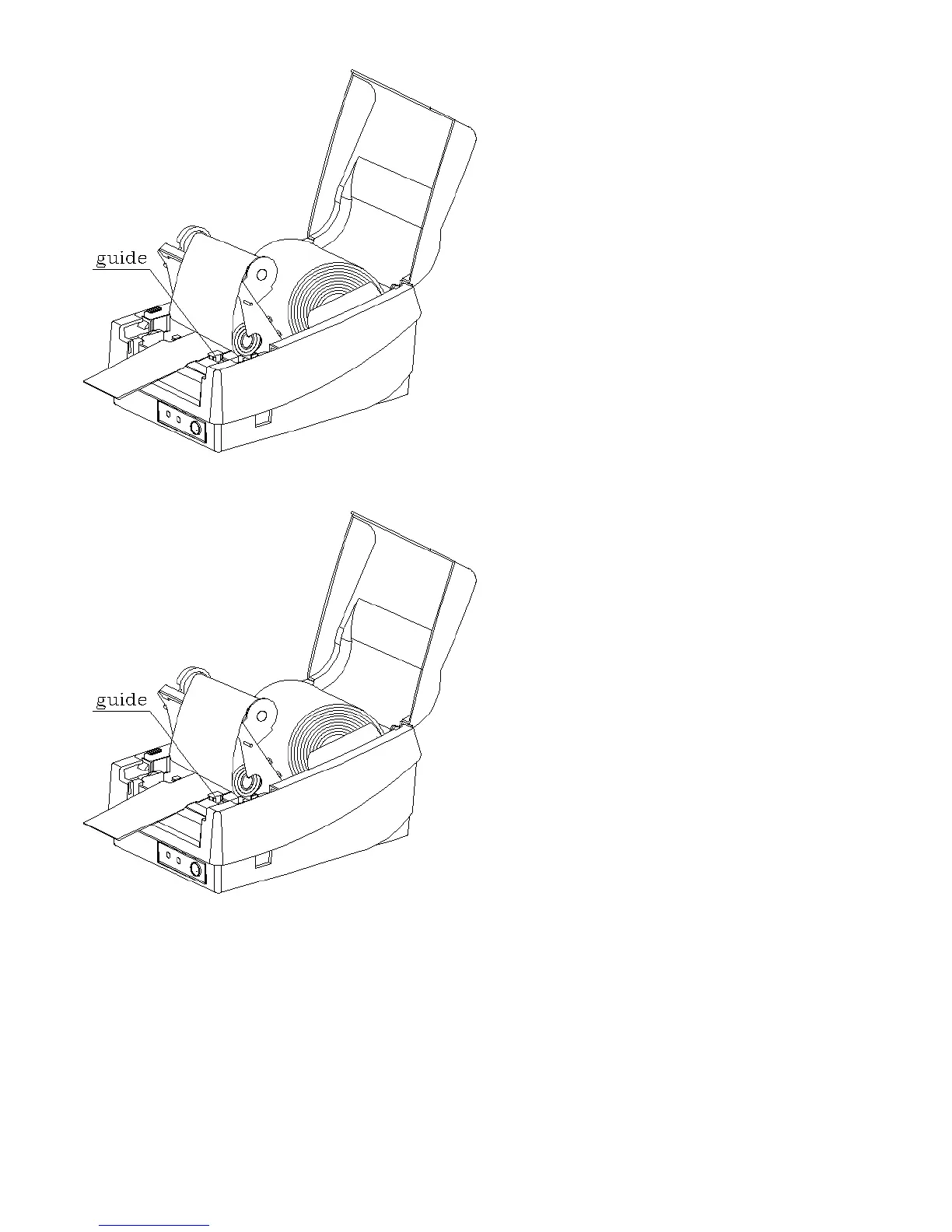 2. Peel off, remove 6-inch labels and route the label backing through the dispenser bar into roller gap between the feeding