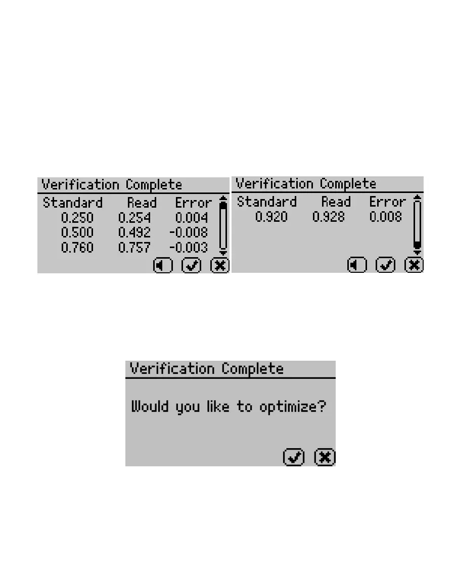 When measurements are complete on all four standards, the Verication Complete