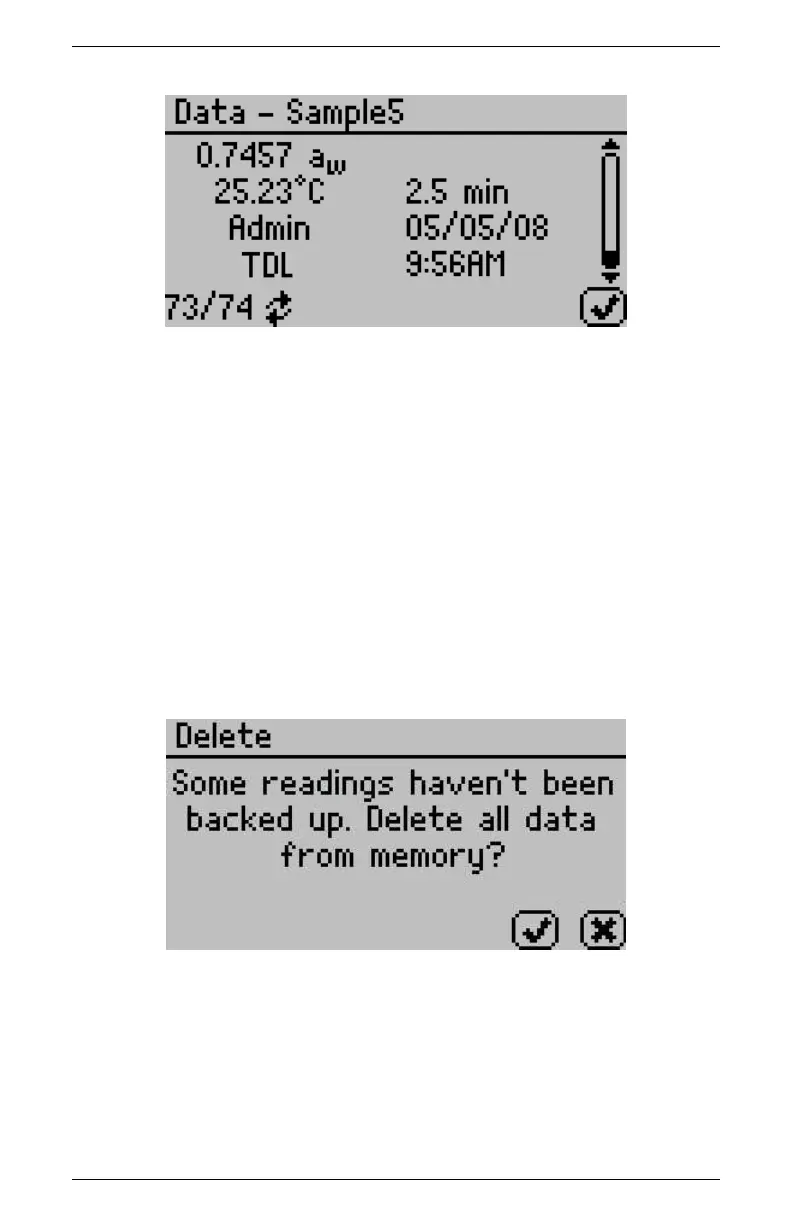 ber of the stored reading. The up and down arrows scroll through