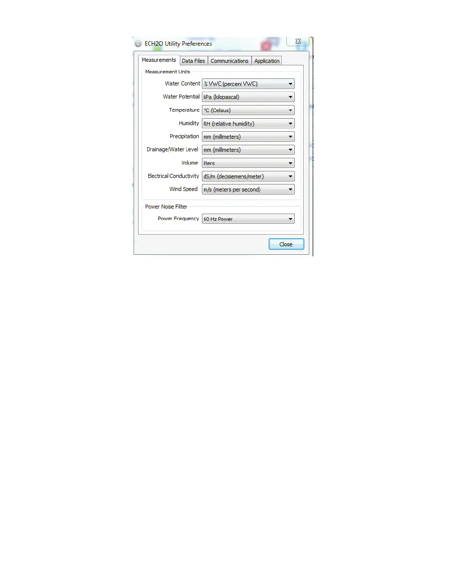 ECH20 Utility Preferences window. Locate the type of measurement and select a unit from