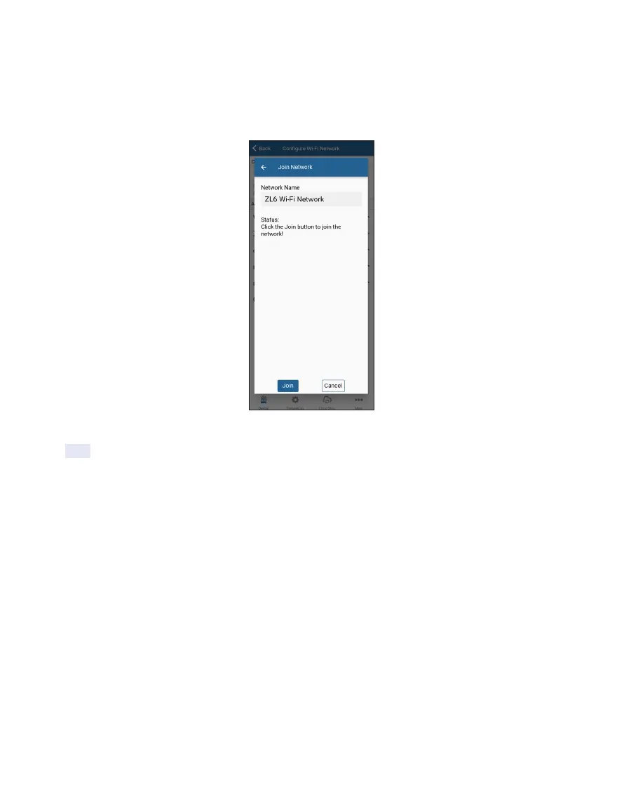 Tap Join to send the network settings to ZL6. The logger proceeds to connect to this Wi-Fi