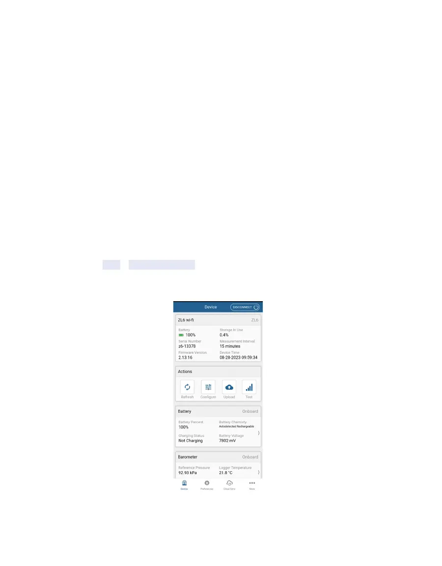 ZENTRA Utility Mobile communicates with the ZL6 using Bluetooth to configure the ZL6 and