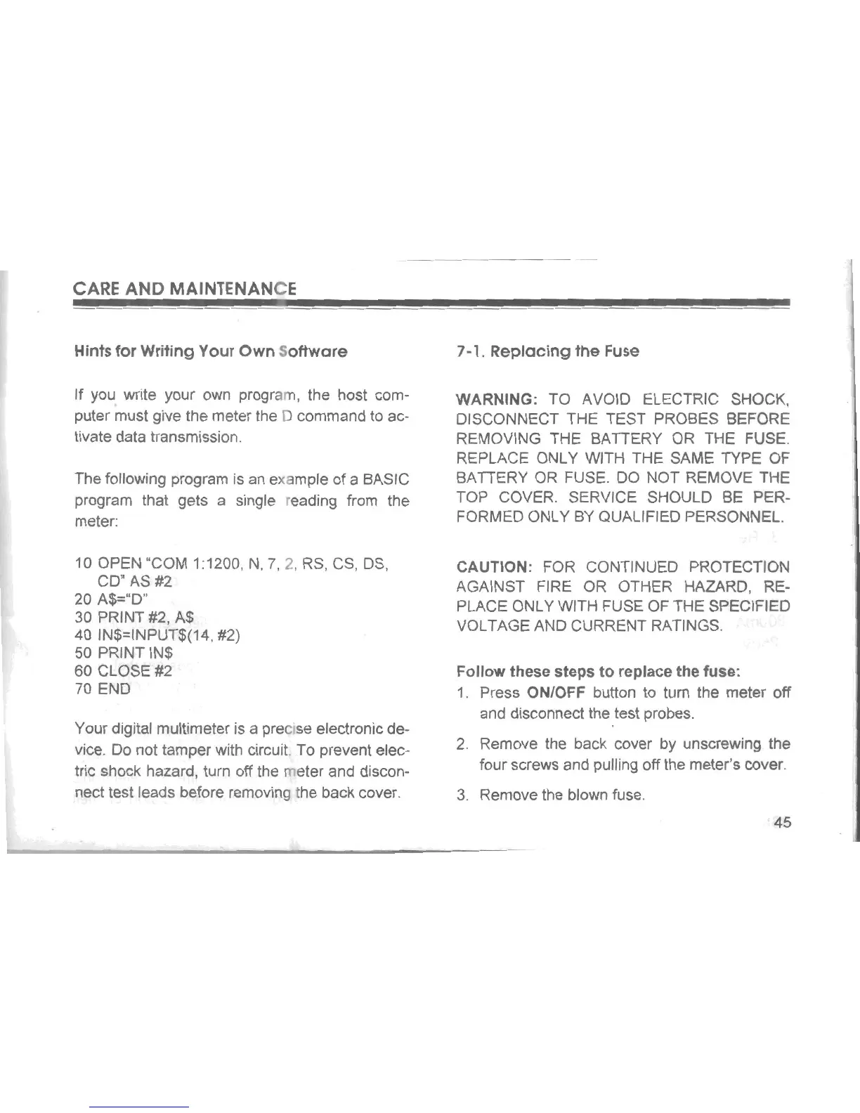 metex M-3850D - Care, Maintenance, and Warranty; Fuse Replacement and General Maintenance