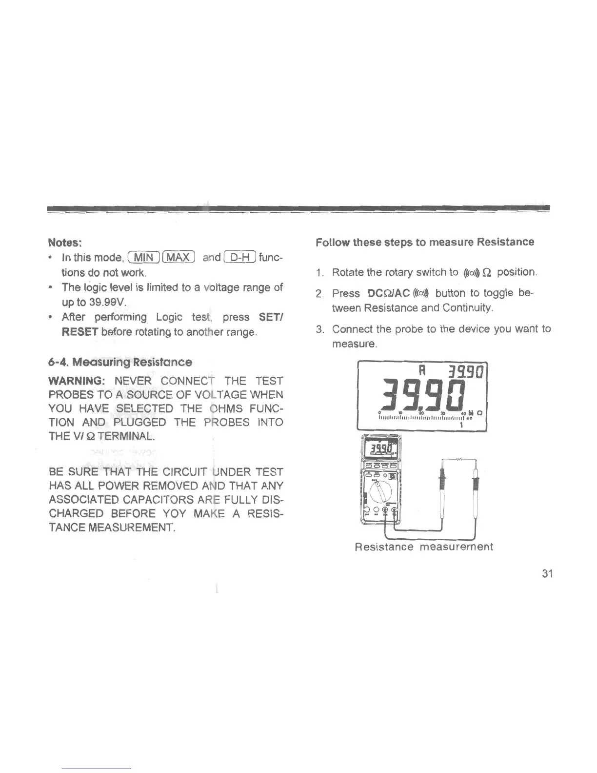 metex M-3870D - Resistance Measurement; Performing Resistance Measurement