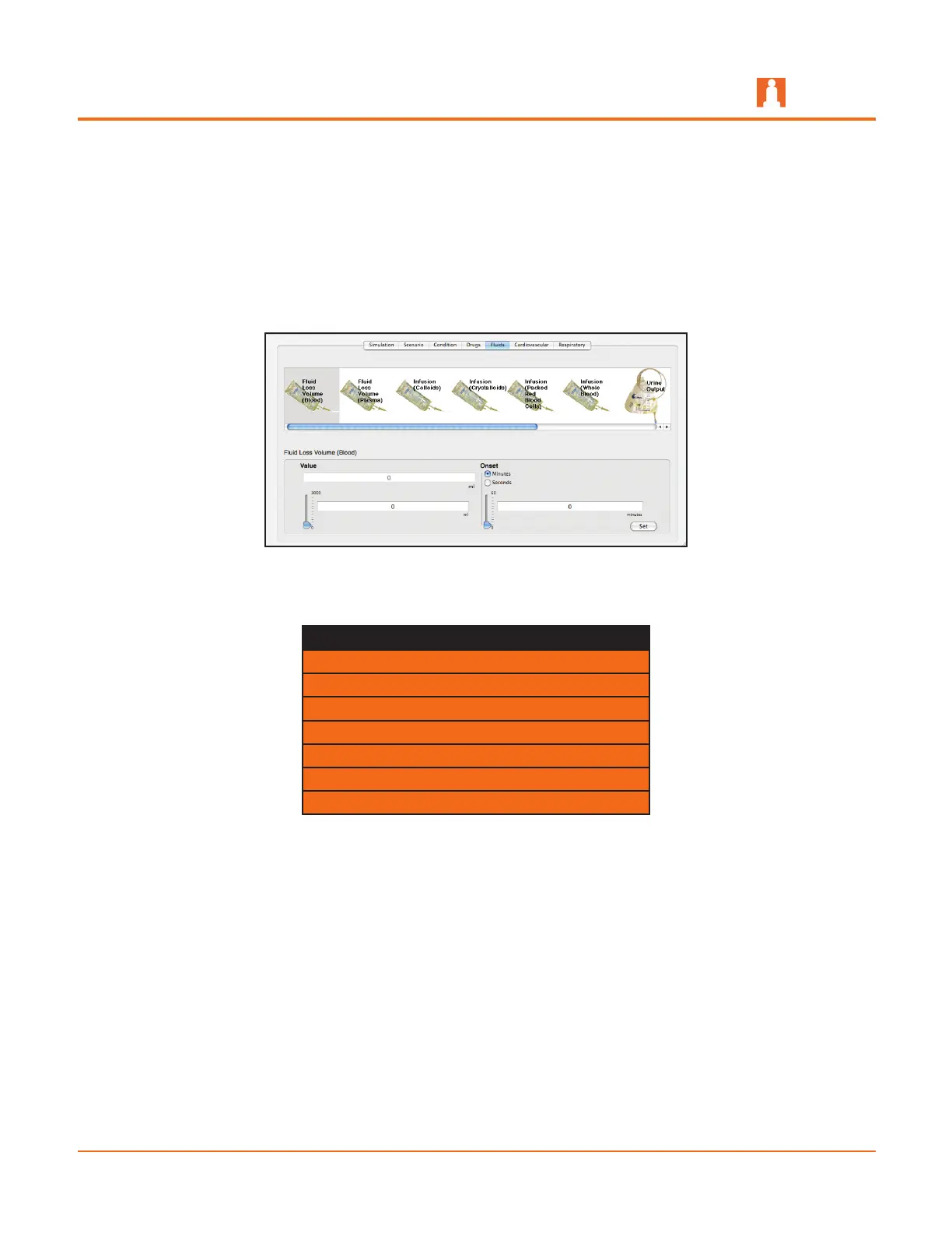 amount of fluid lost by or infused into the patient. The upper panel provides scrollable