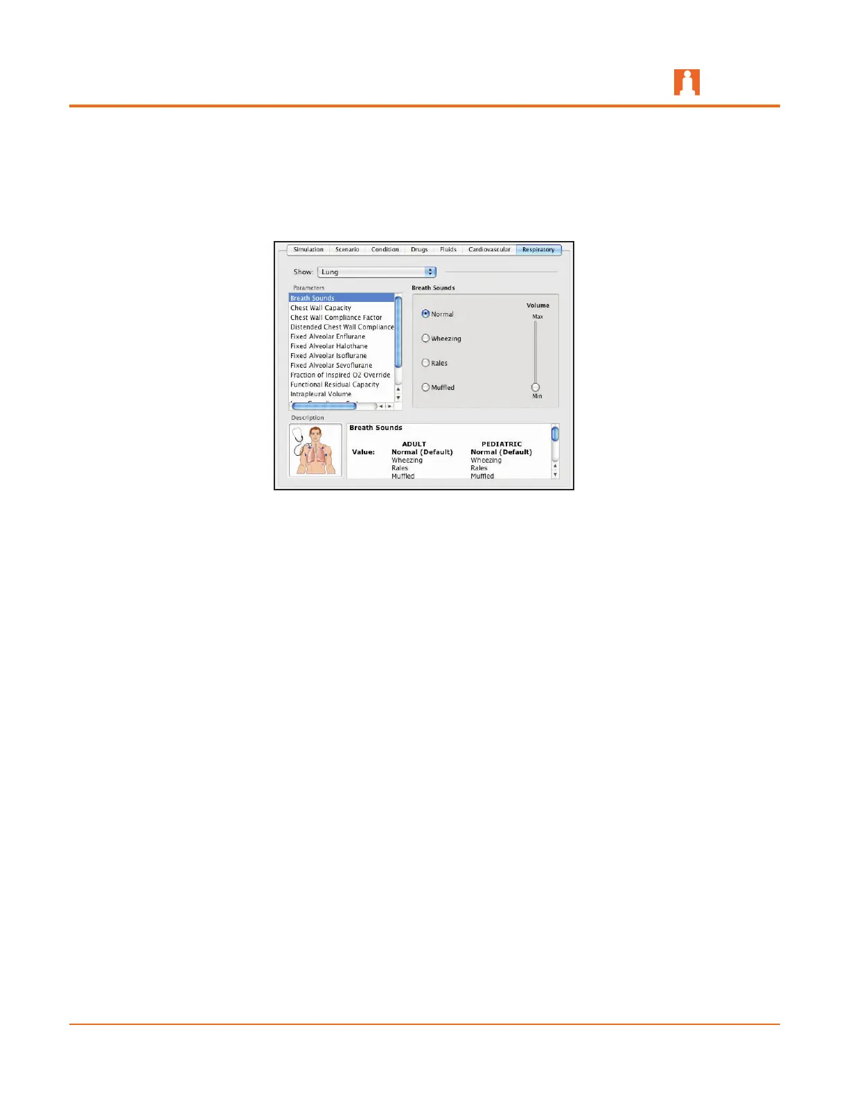 The Breath Sounds parameter is located on the Lung menu beneath the Respiratory
