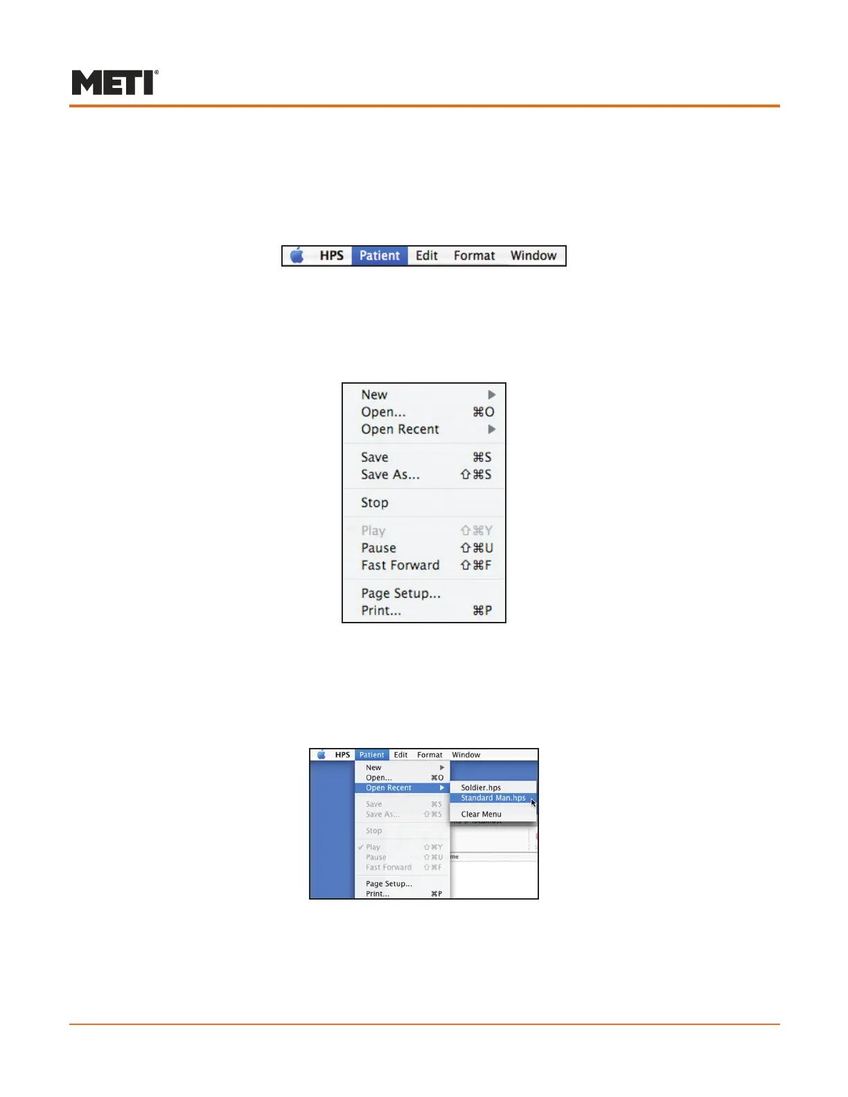 The Patient menu located on the menu bar also contains the options for opening and