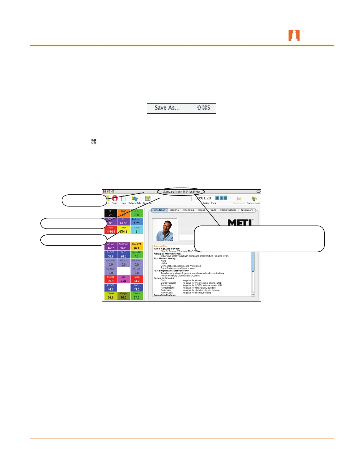 of the patient (e.g., Stannette) as well as the name of the host server (e.g., localhost).