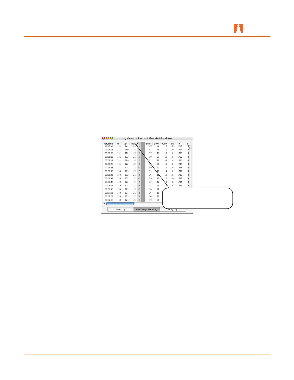 Because a large amount of data is recorded in the Physiologic Data Log, the horizontal
