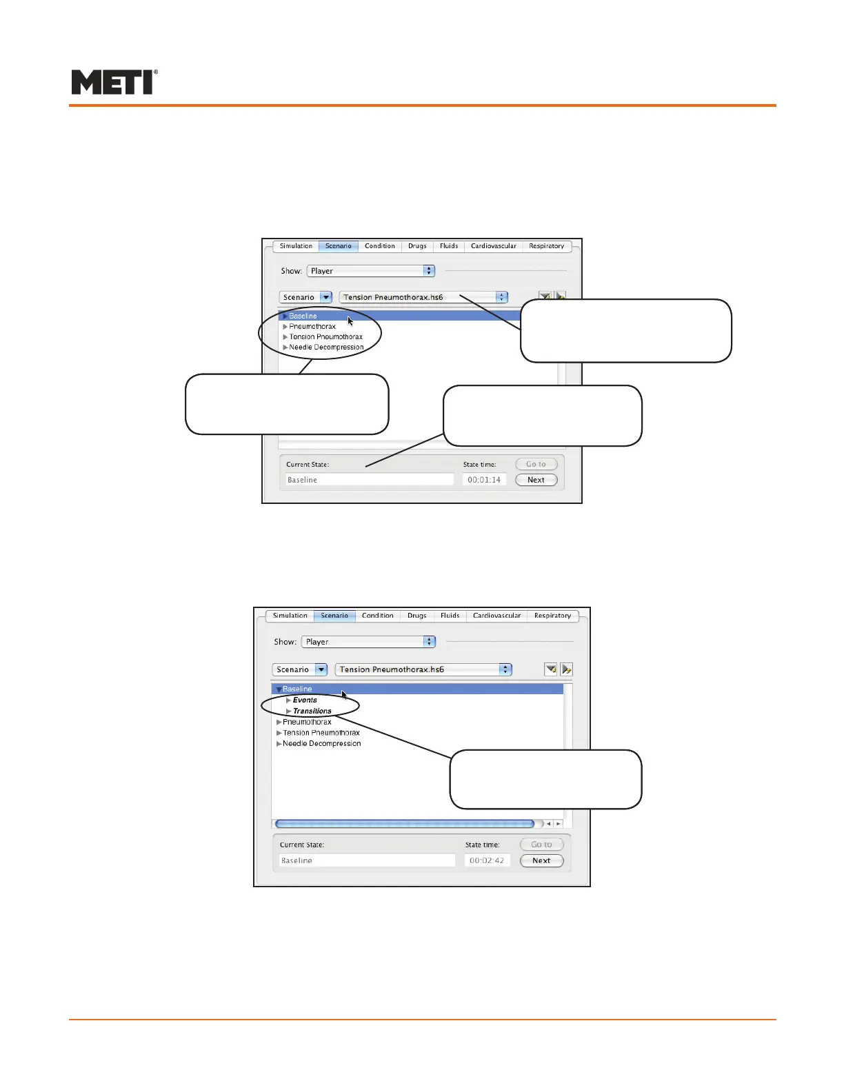 When a scenario appears, the states that comprise the scenario appear in the Scenario