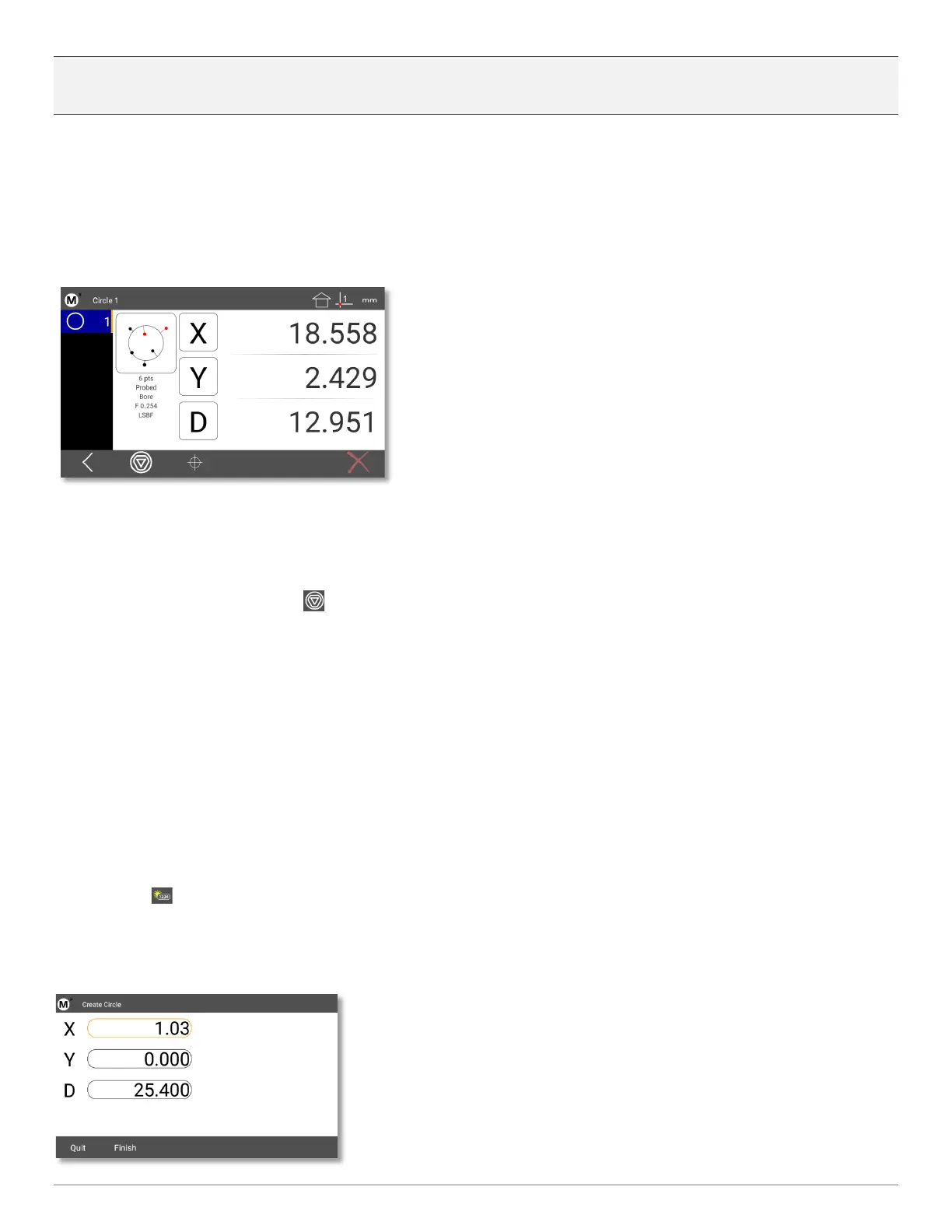 constructed and thus cannot be played back in a program. To create a Circle, press the Circle key, then the “Create