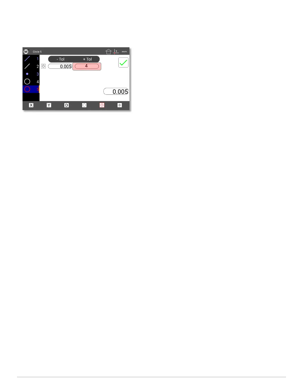 under the “+Tol” column and use the numeric keypad to enter the feature number of the desired reference
