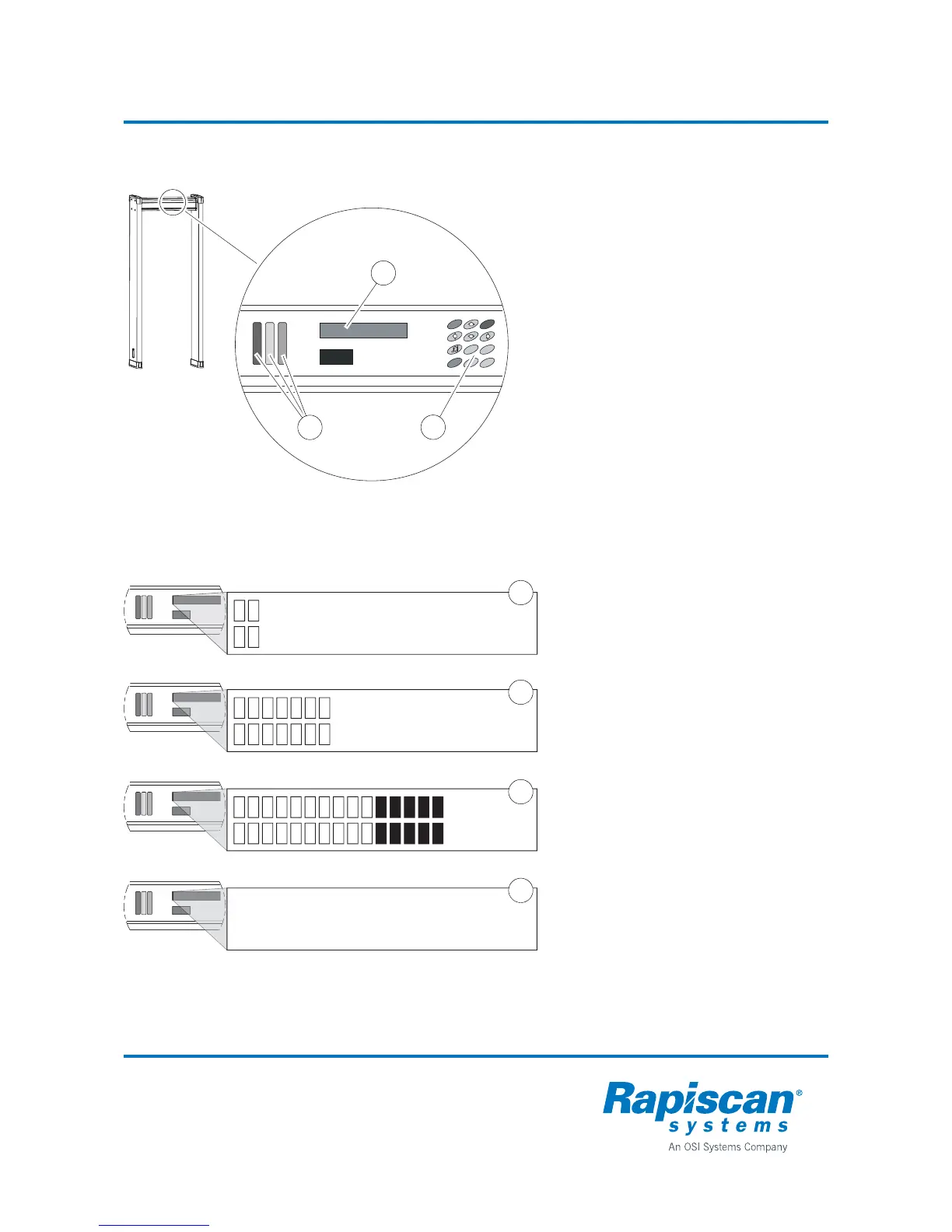 status lights (2) and keypad (3).