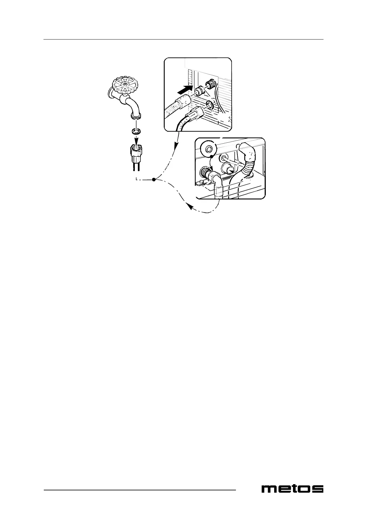 • Lead the discharge hose into an open drain trap, head of the pipe must stay over an