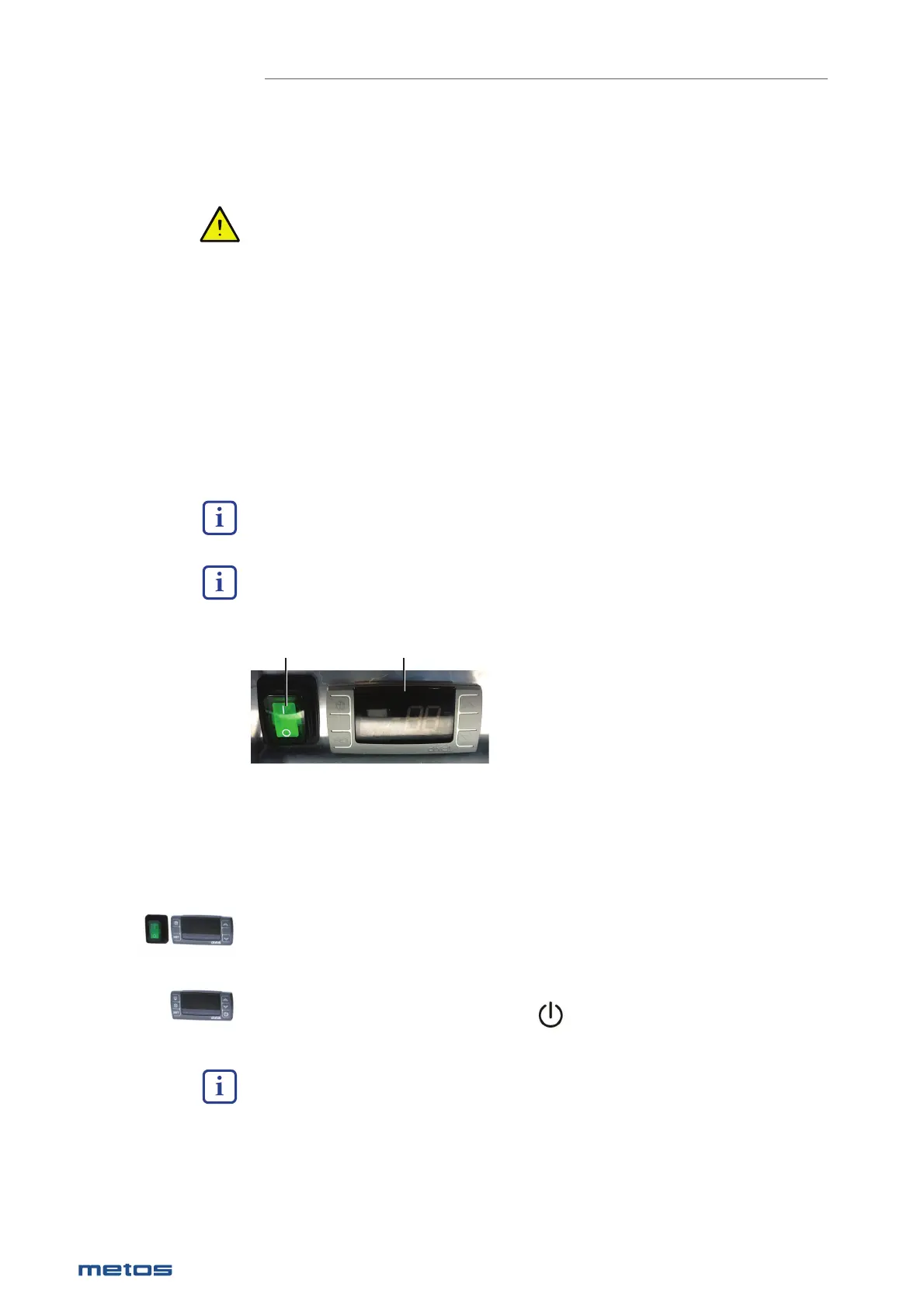 Slå på apparaten med hjälp strömbrytaren varvid termostatdisplayen visar apparatens innertemperatur.
