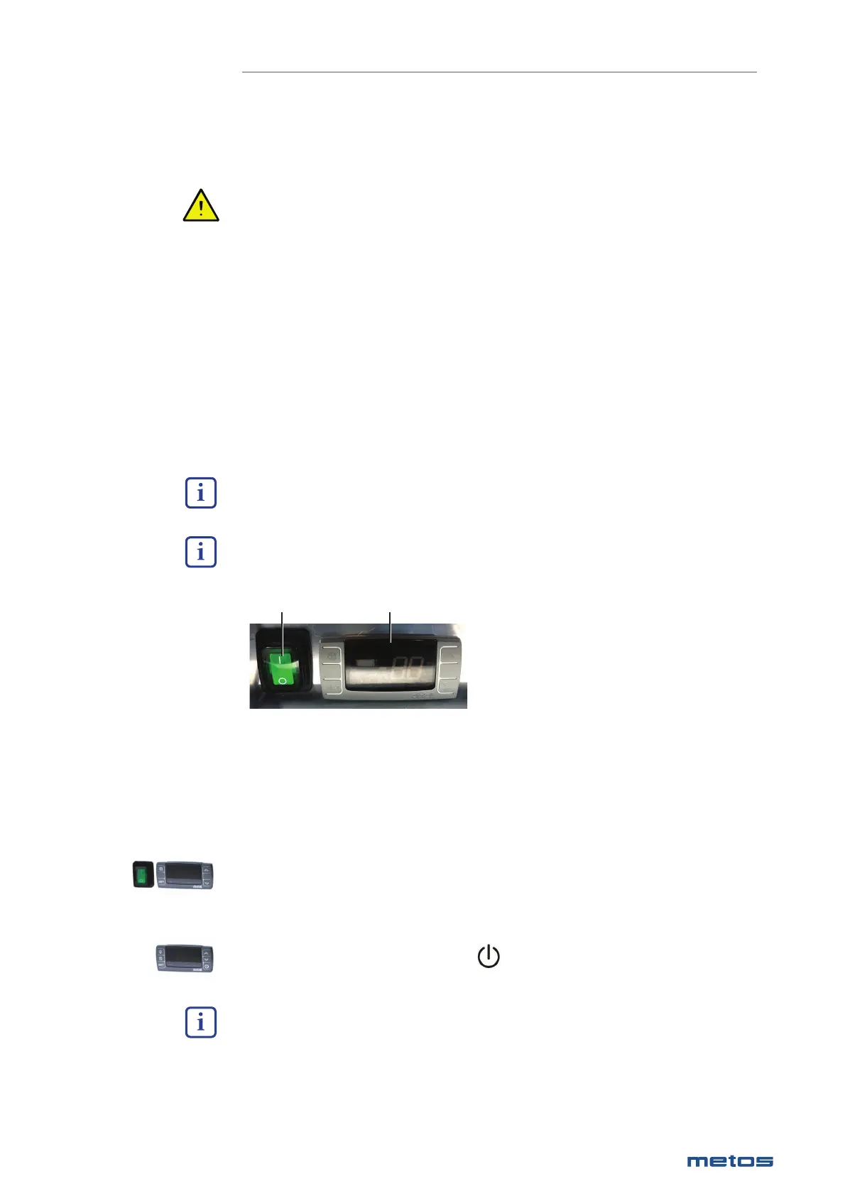 Käynnistä laite kytkemällä se päälle virtakytkimen avulla jolloin termostaatin näytölle ilmestyy kylmäka-