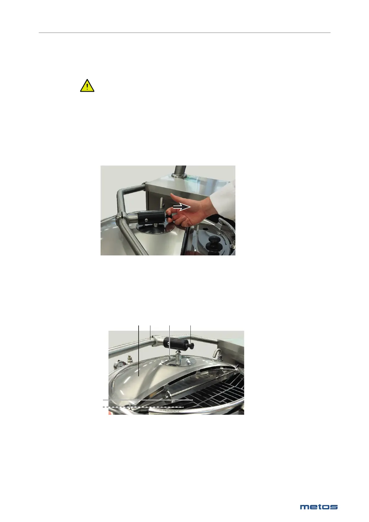 Pull the lifting arm down over the lid. Turn the solid lid so that the guiding pin lines up with the hole in the