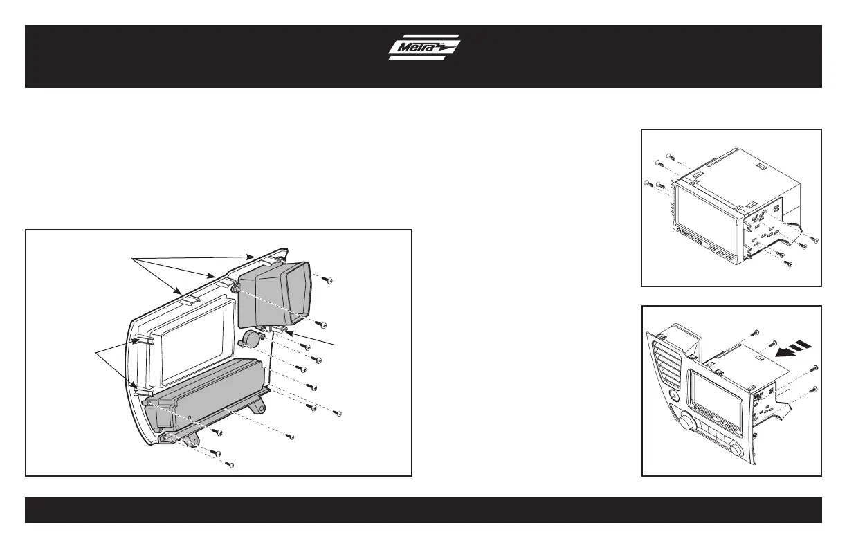 quitó al desarmar el panel de la moldura del radio. Use los tres tornillos Phillips de cabeza