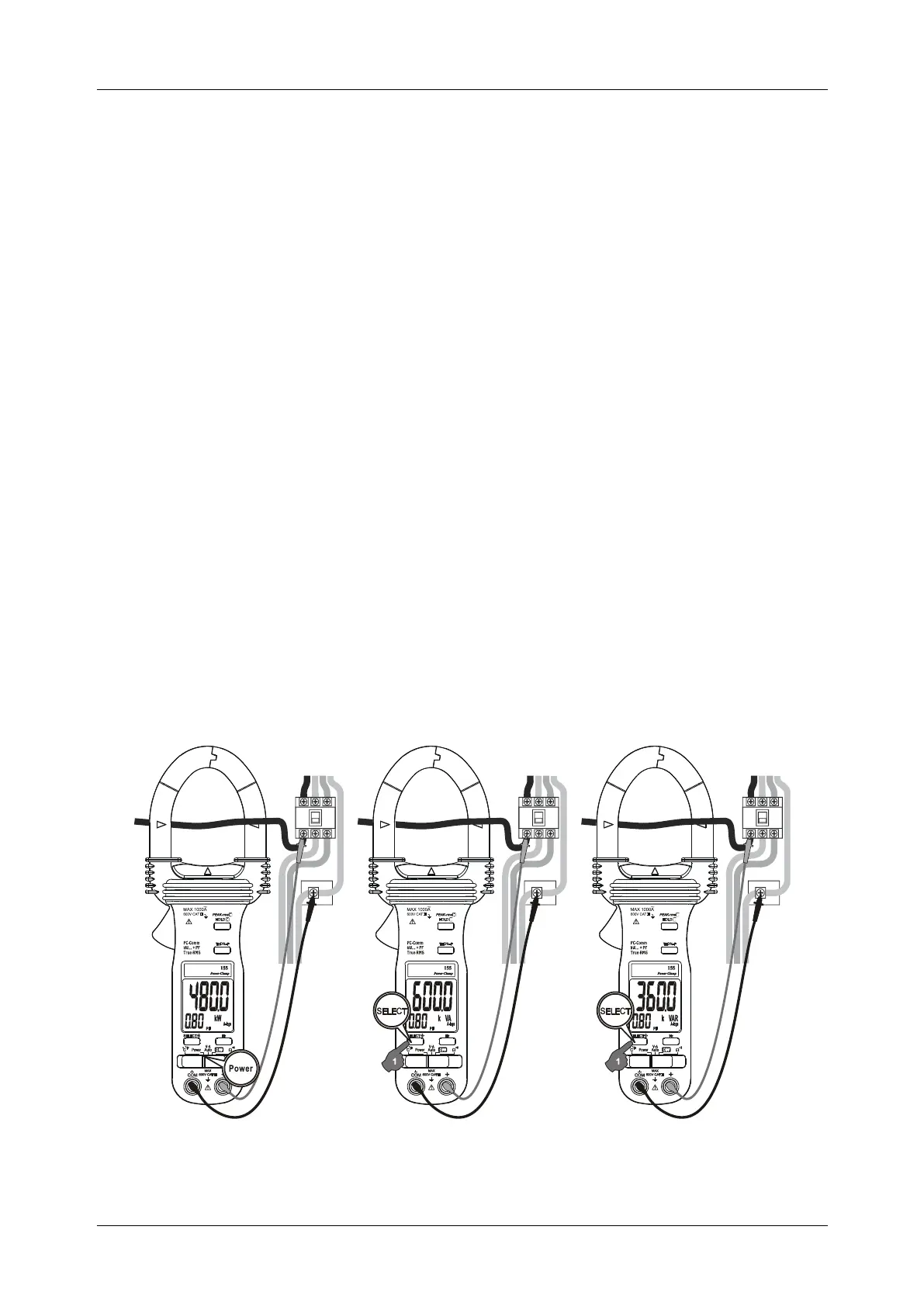 SELECT wählt zwischen den Messfunktionen W (Wirkleistung), VAR