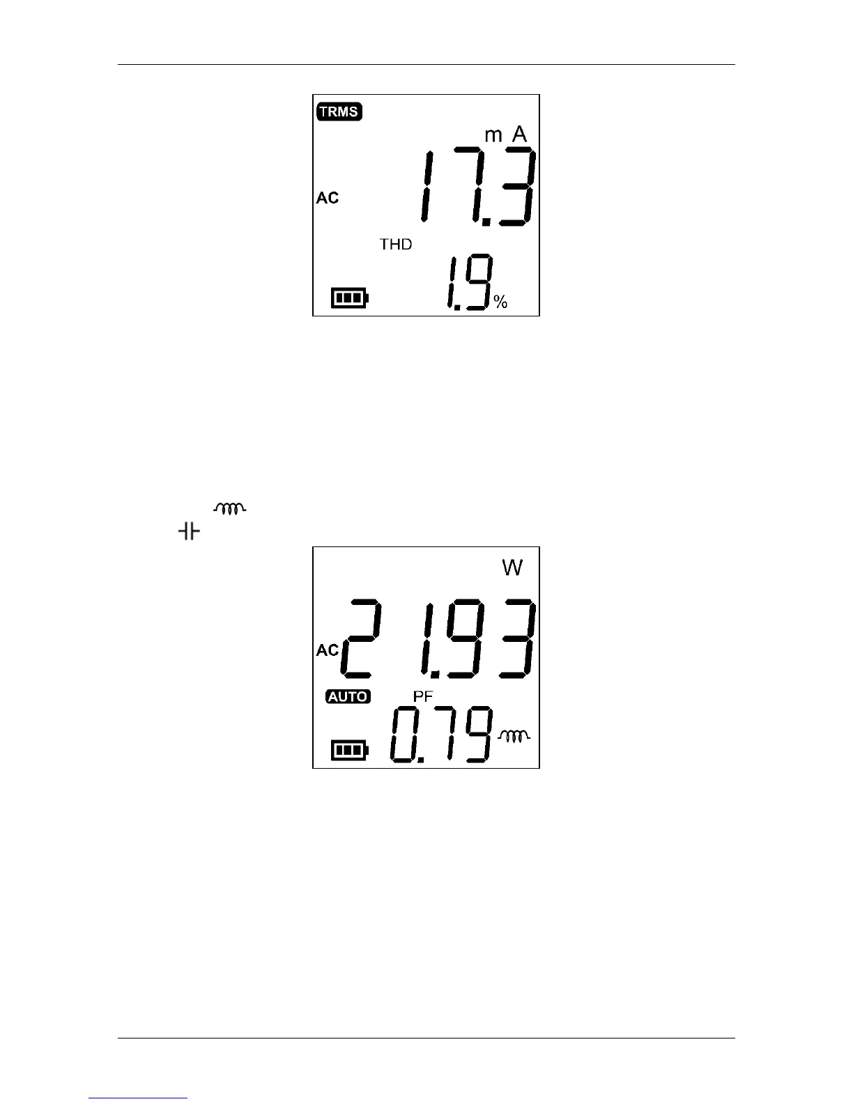 des Leistungsfaktors auf dem Bildschirm angezeigt. Wenn die Last induktiv ist, erscheint