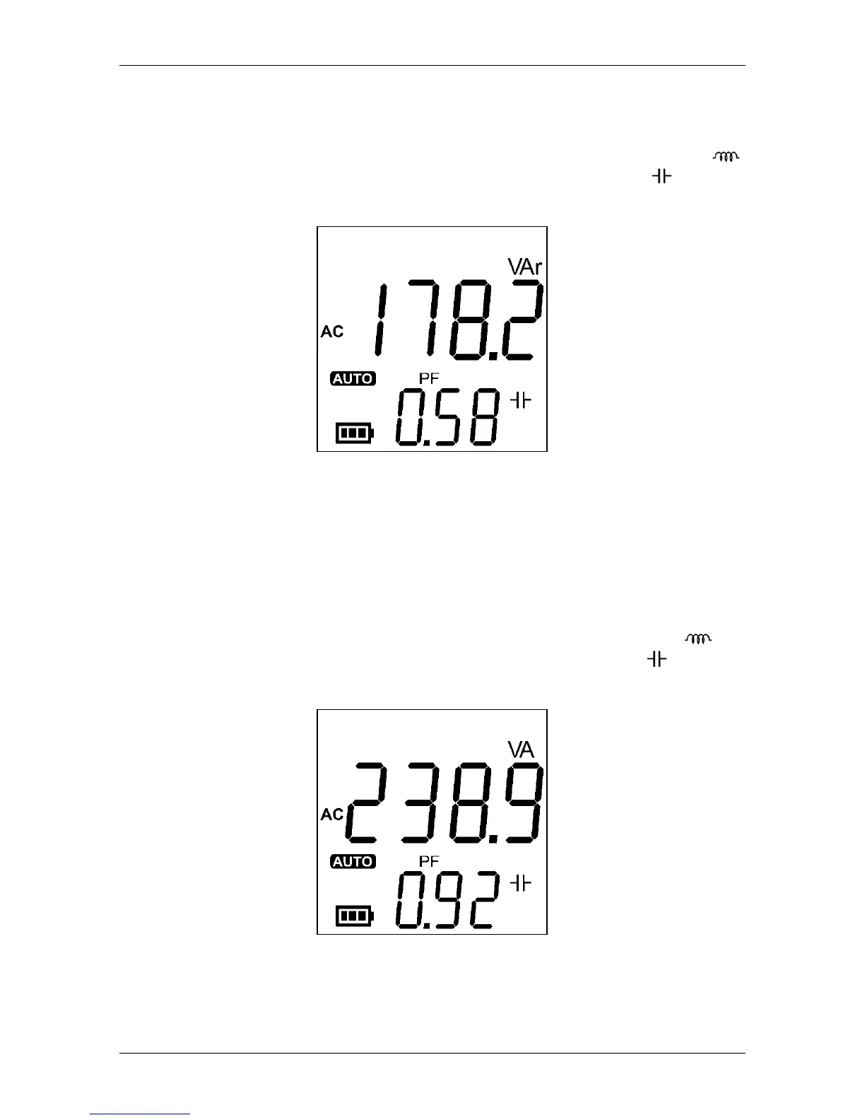 des Leistungsfaktors angezeigt. Wenn die Last induktiv ist, erscheint das Symbol