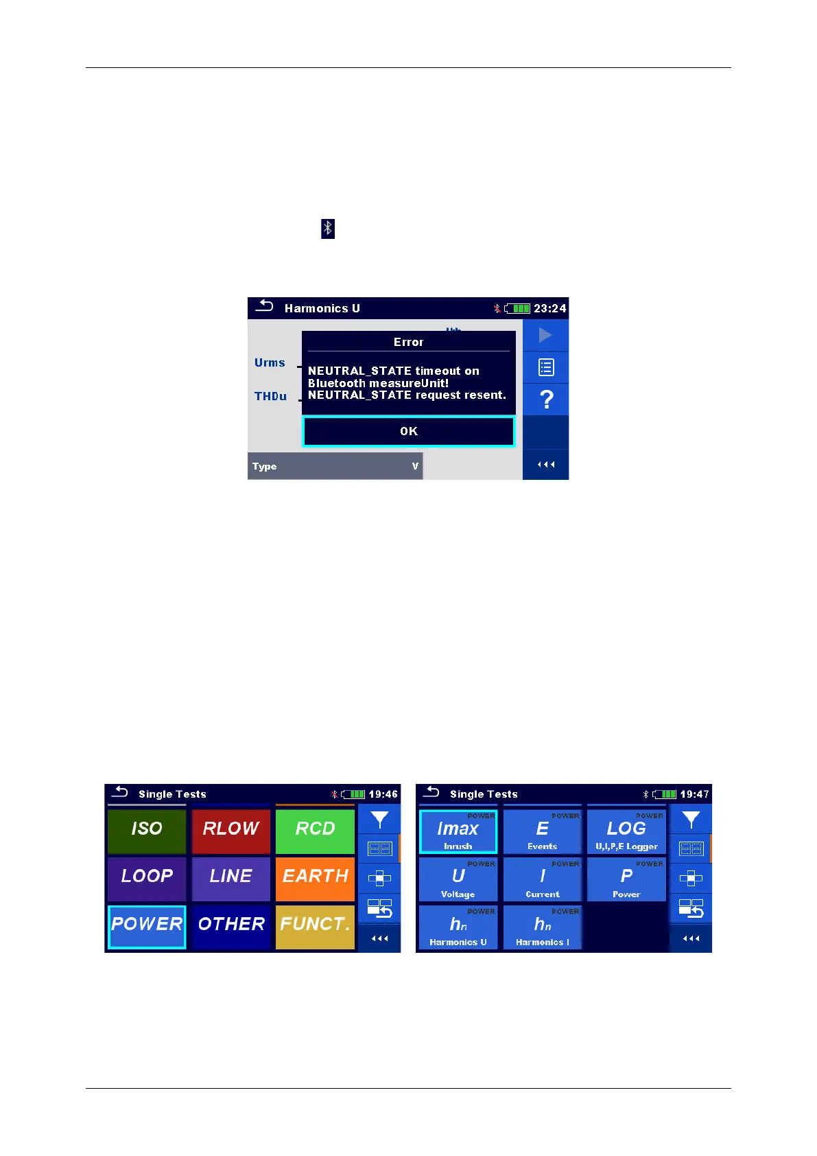 nicht aktiv ist, ist das BT-Symbol rot durchgestrichen und eine Fehlermitteilung wird ausgegeben, siehe
