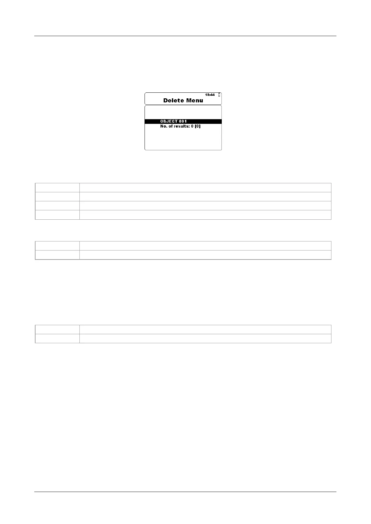 To enter Delete results menu in Memory menu SELECT key should be pressed. Single