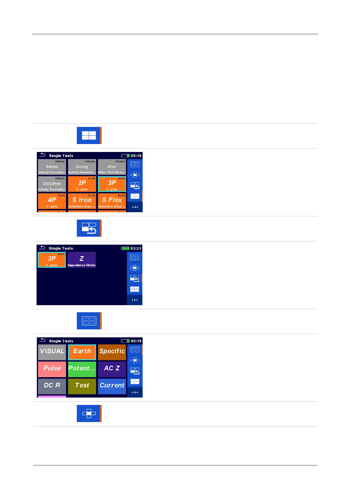 In Single tests main menu four modes for selecting single tests are available.