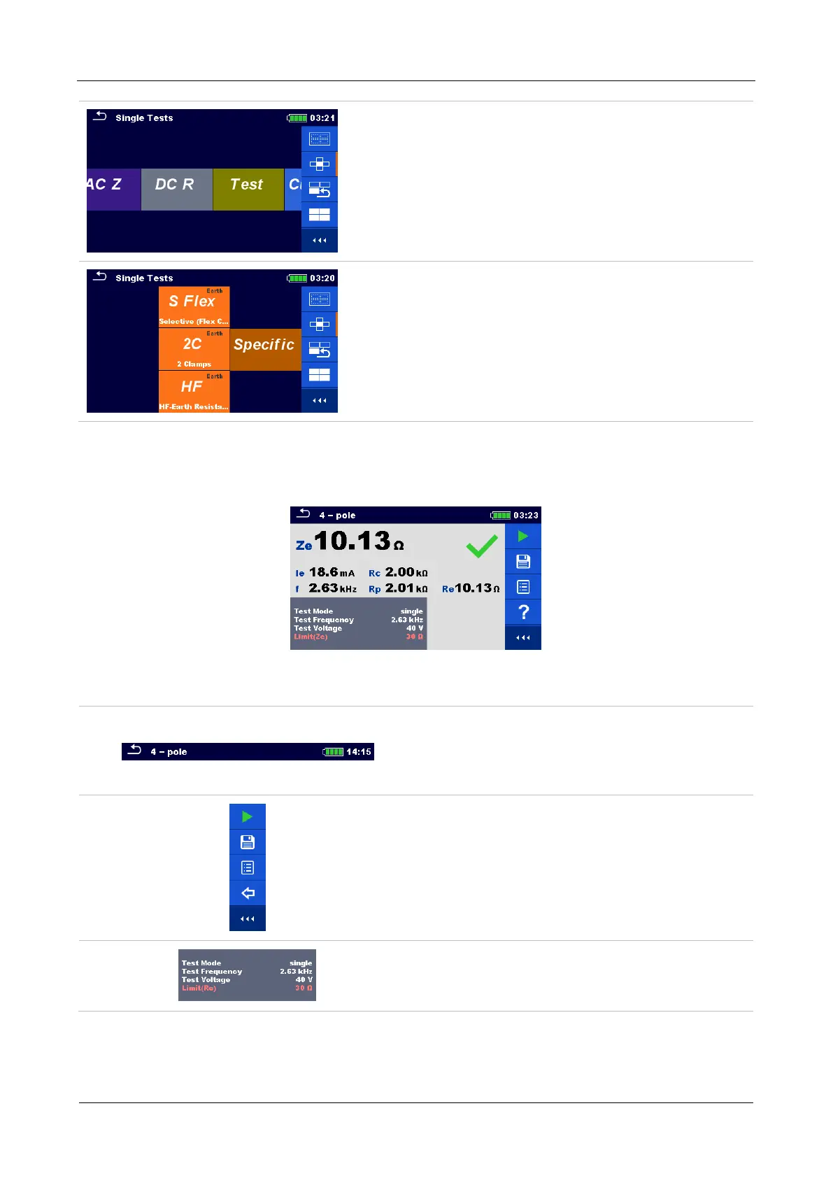 Figure 10.1: Single test screen organization Example of 4 -pole measurement