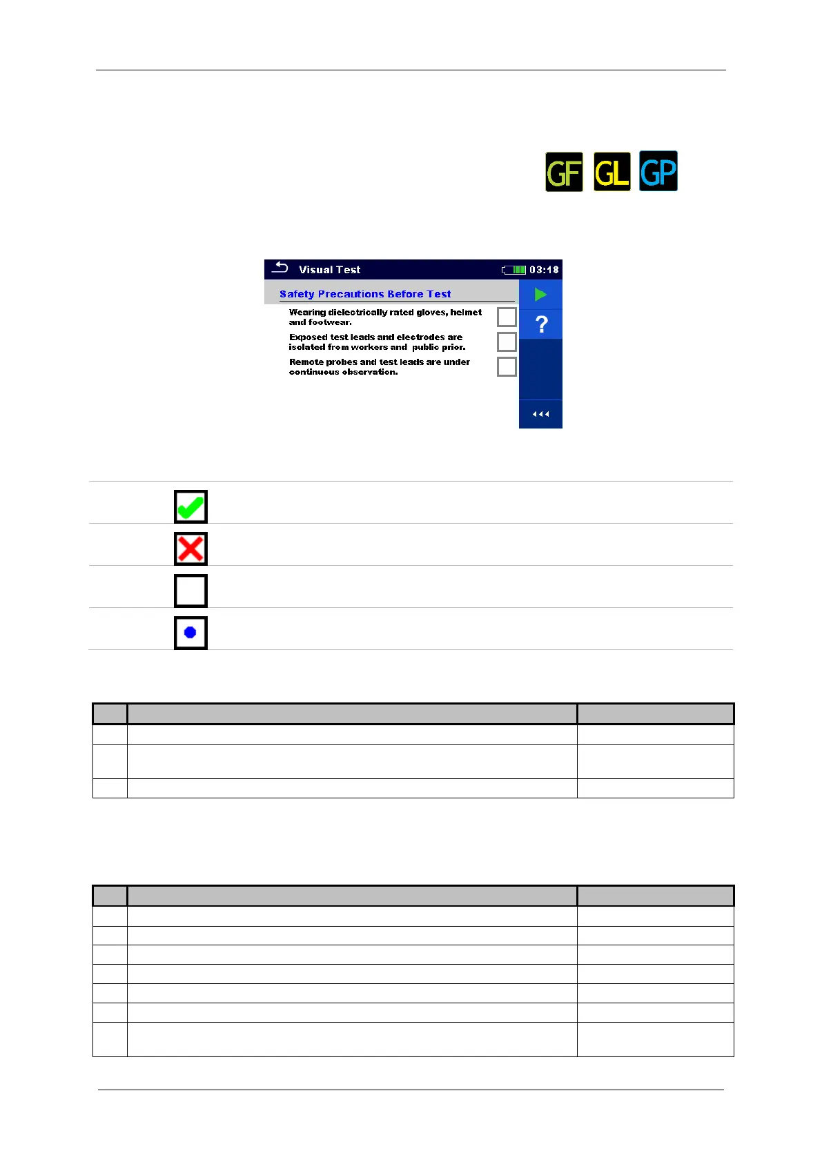 Table 11.2: Visual Test - Safety Precautions Before Test