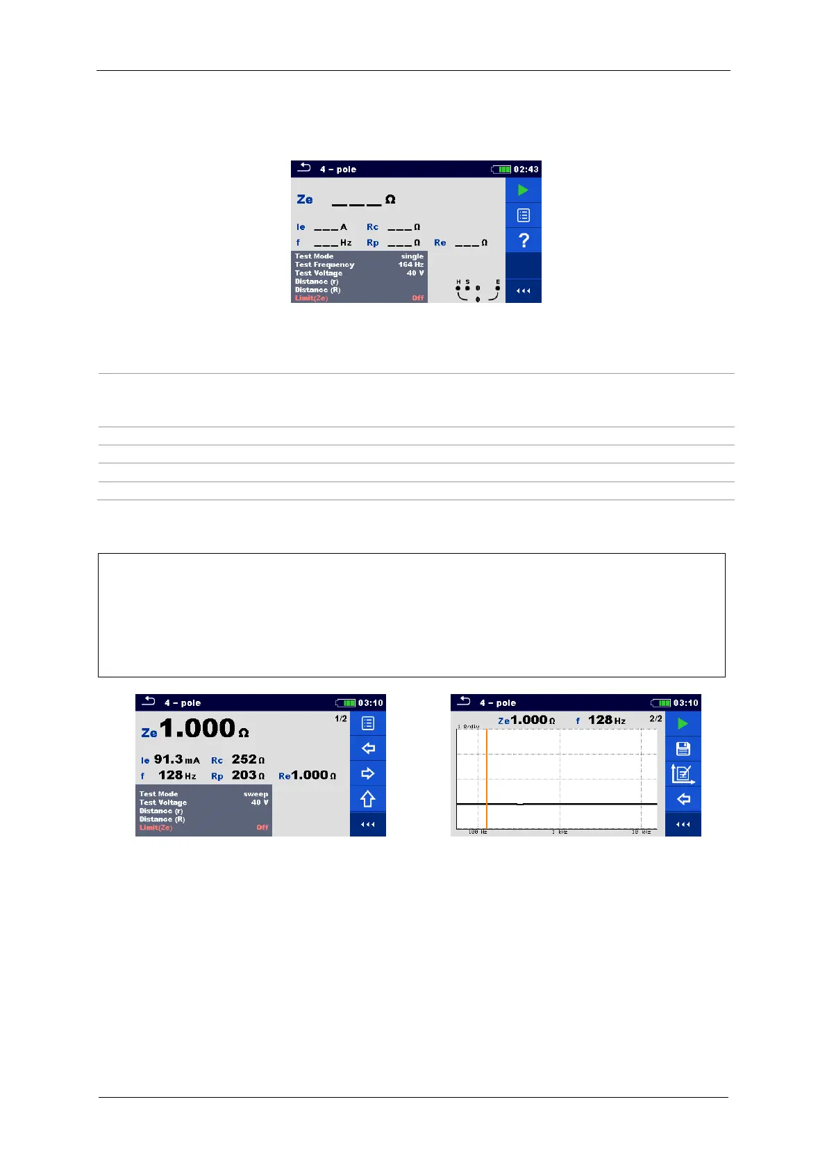Test can be started from the 4 - pole measurement window. Before carrying out a test, the