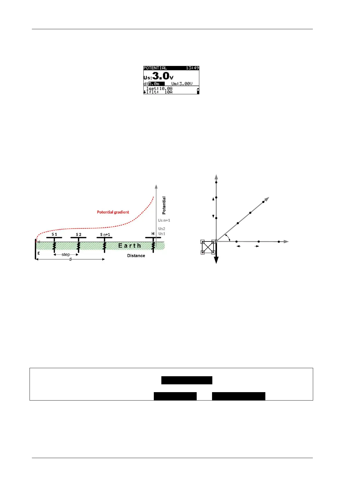 Displayed results for Potential measurements: