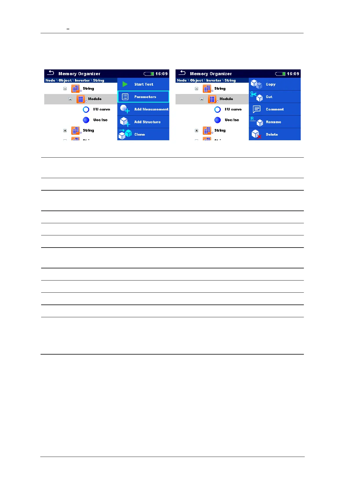 Add a new empty measurement. Menu for adding new measurement