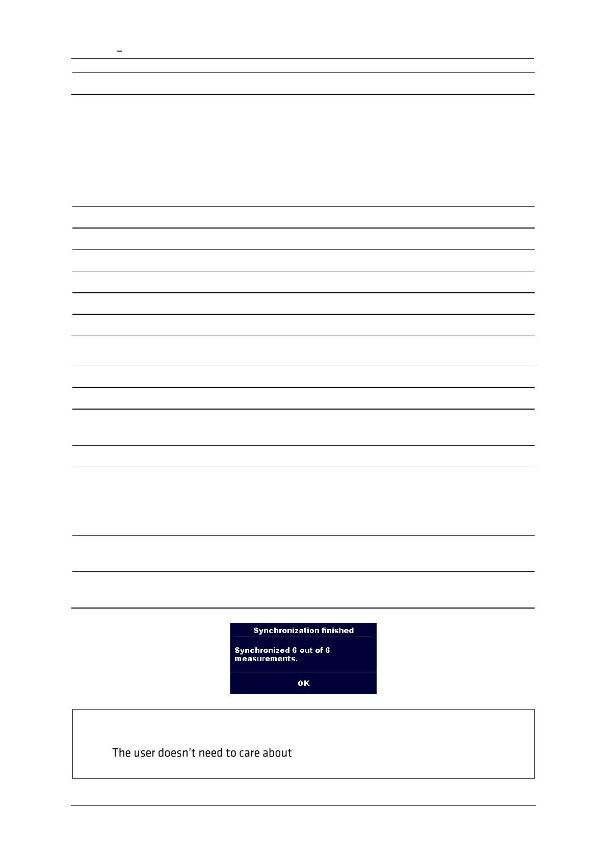 After data is synchronized, confirmation with number of updated measurements is