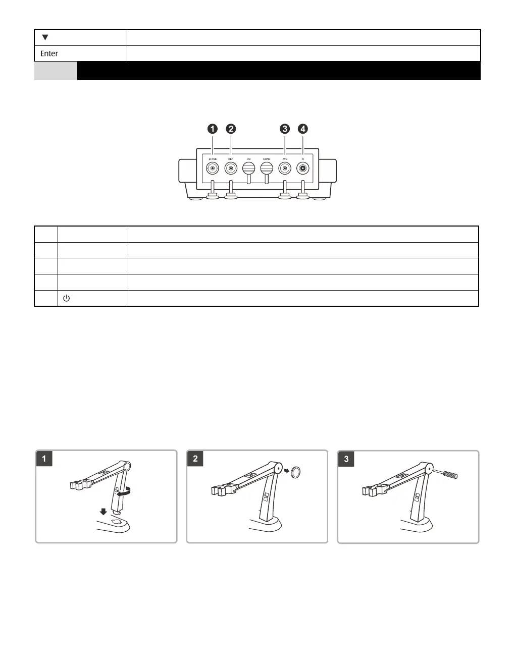 Take out the electrode arm from the accessory box. The base plate of the electrode holder has a circular hole, the electrode arm