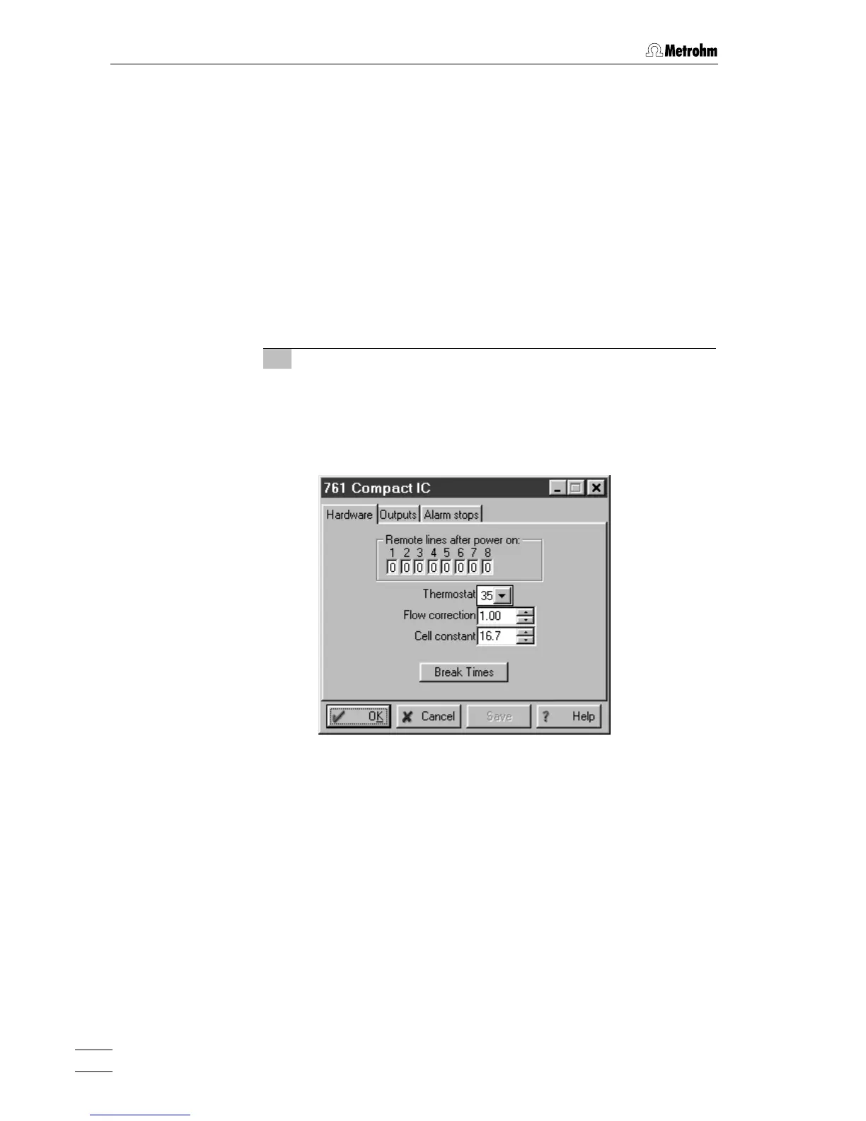 Of the general hardware settings only the input of the cell constant