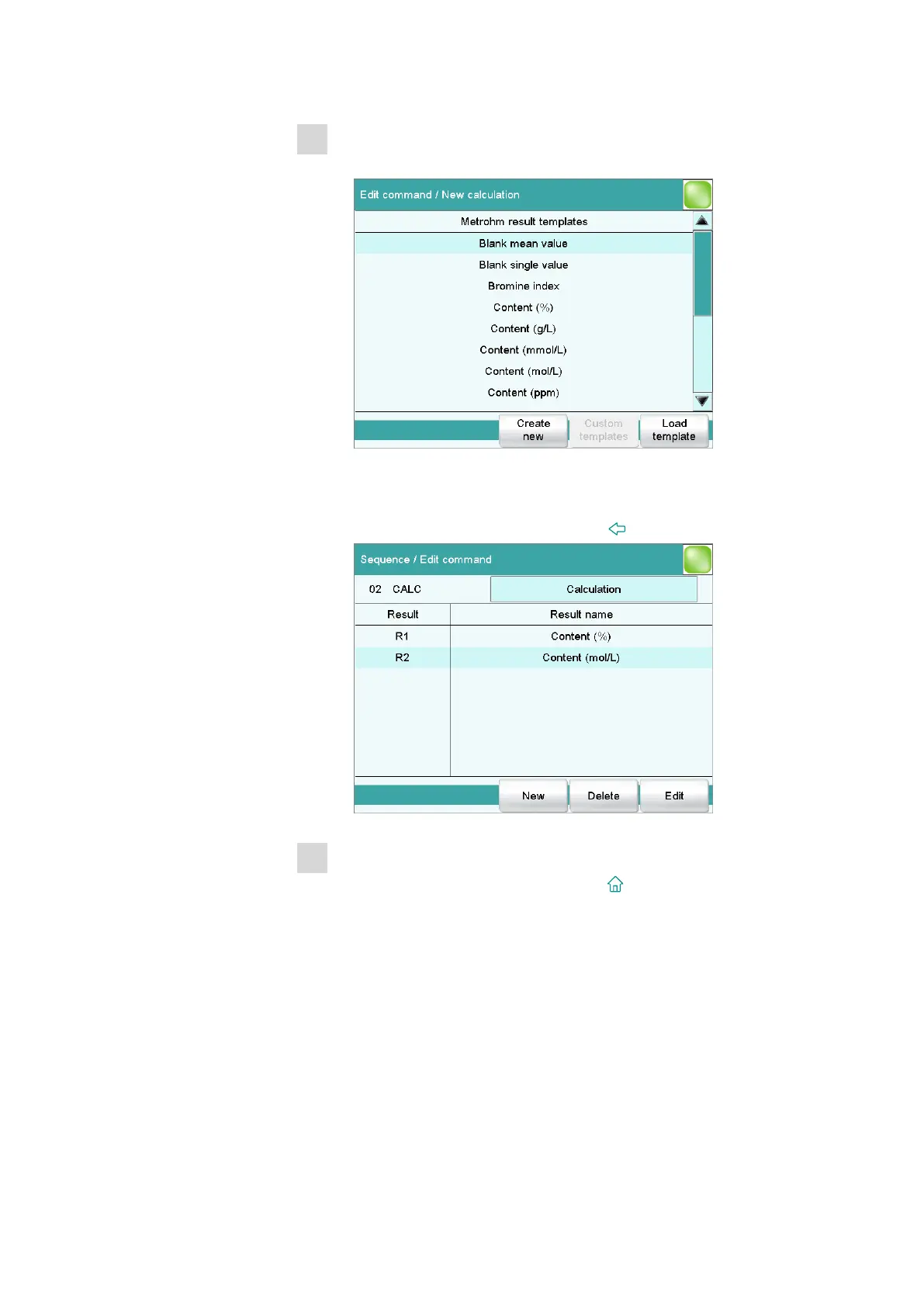 ■ Select the result template Content (mol/L) and tap on [Load