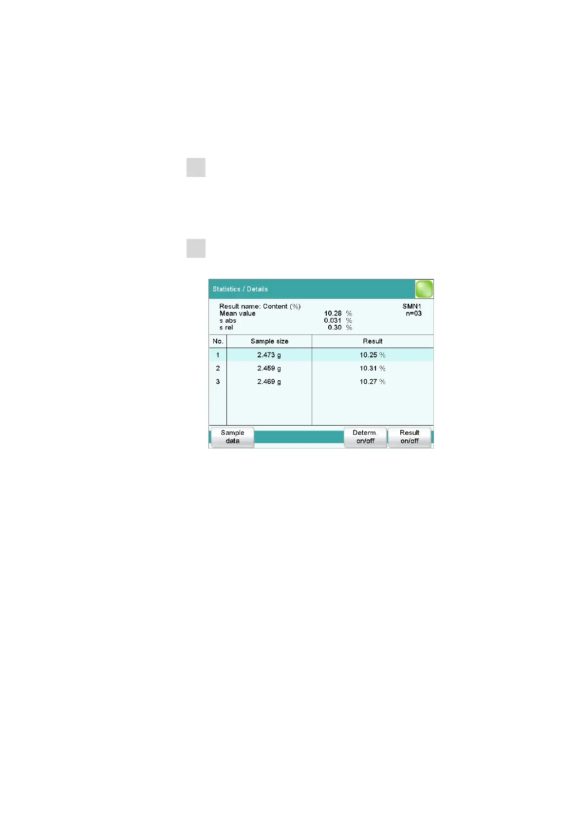 result as well as the absolute and the relative standard deviation. The