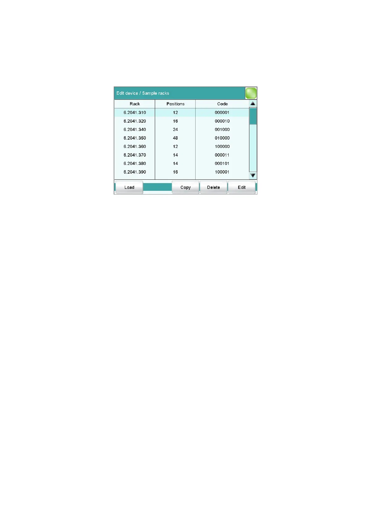 Edit the data of the selected sample rack (see chapter 11.6.1, page 102).