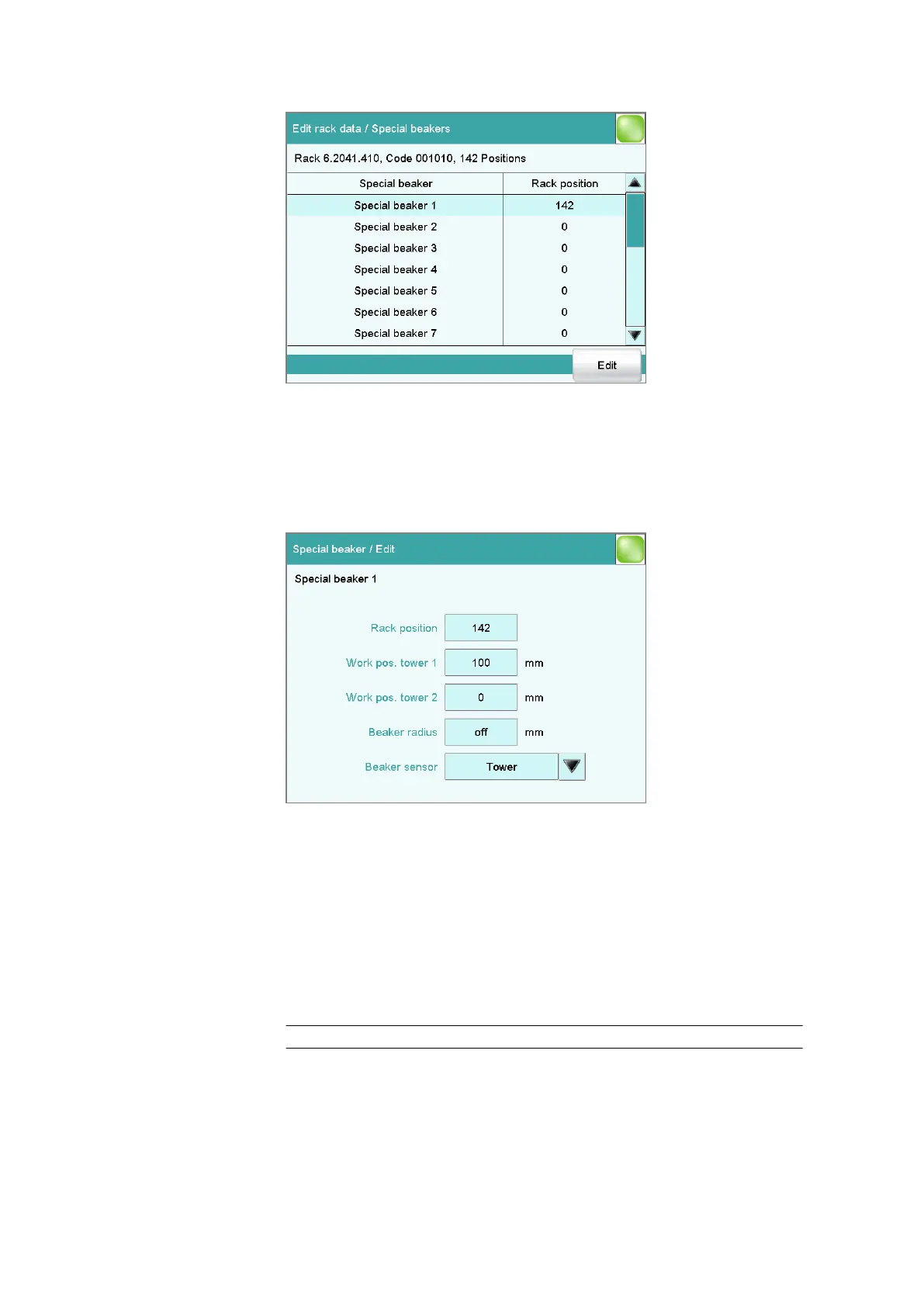 tion 1. Rack positions defined as special beakers can no longer be used as
