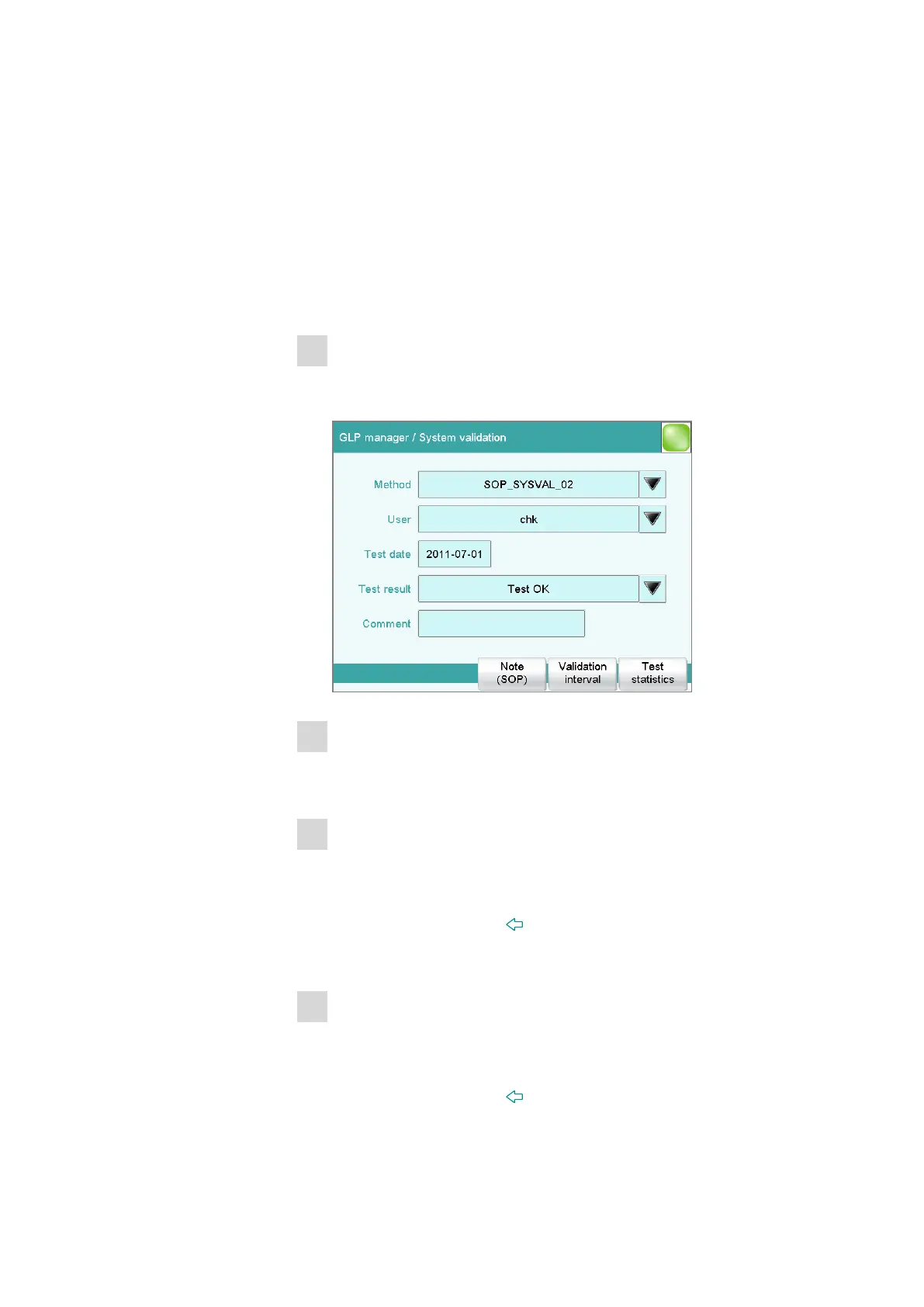 ■ In the System / GLP manager dialog, tap on the [System vali-